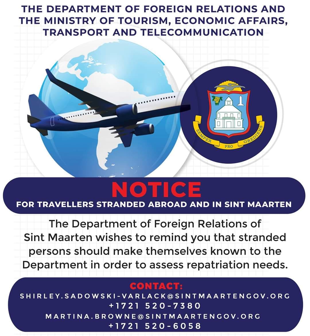 Traffic and Telecommunication (TEATT), a repatriation flight has been arranged with Spirit Airlines for students and residents to return to St. Maarten. The flight will depart from Hollywood International Airport (FLL) in Ft. Lauderdale, FL, and proceed to Princess Juliana International Airport (SXM).