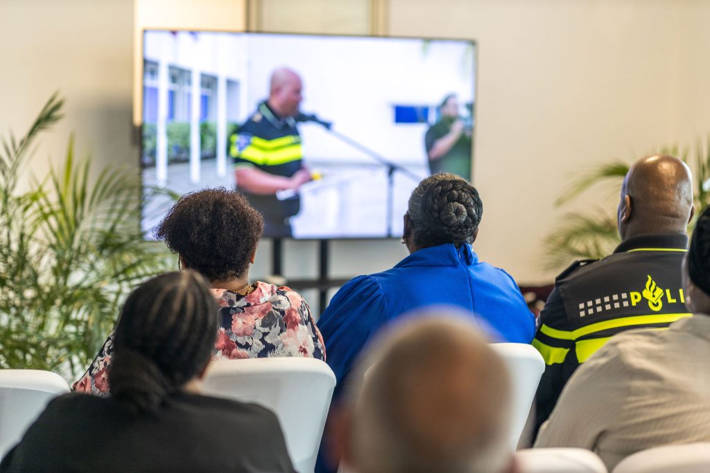 Durante la ceremonia, el Jefe de Policía, Alwyn Braaf, habló sobre la importancia de este momento: “Honramos nuestro pasado. Reconocemos los cimientos establecidos durante la época de la Fuerza de Policía de las Antillas Neerlandesas, de la cual surgimos. Los valores de justicia, autoridad y orden que se aplicaban entonces siguen siendo nuestra brújula hoy. Llevamos esa herencia con orgullo. No como algo del pasado, sino como parte viva de quienes somos; sin duda, verán el reflejo de estos cimientos en la inauguración de hoy.