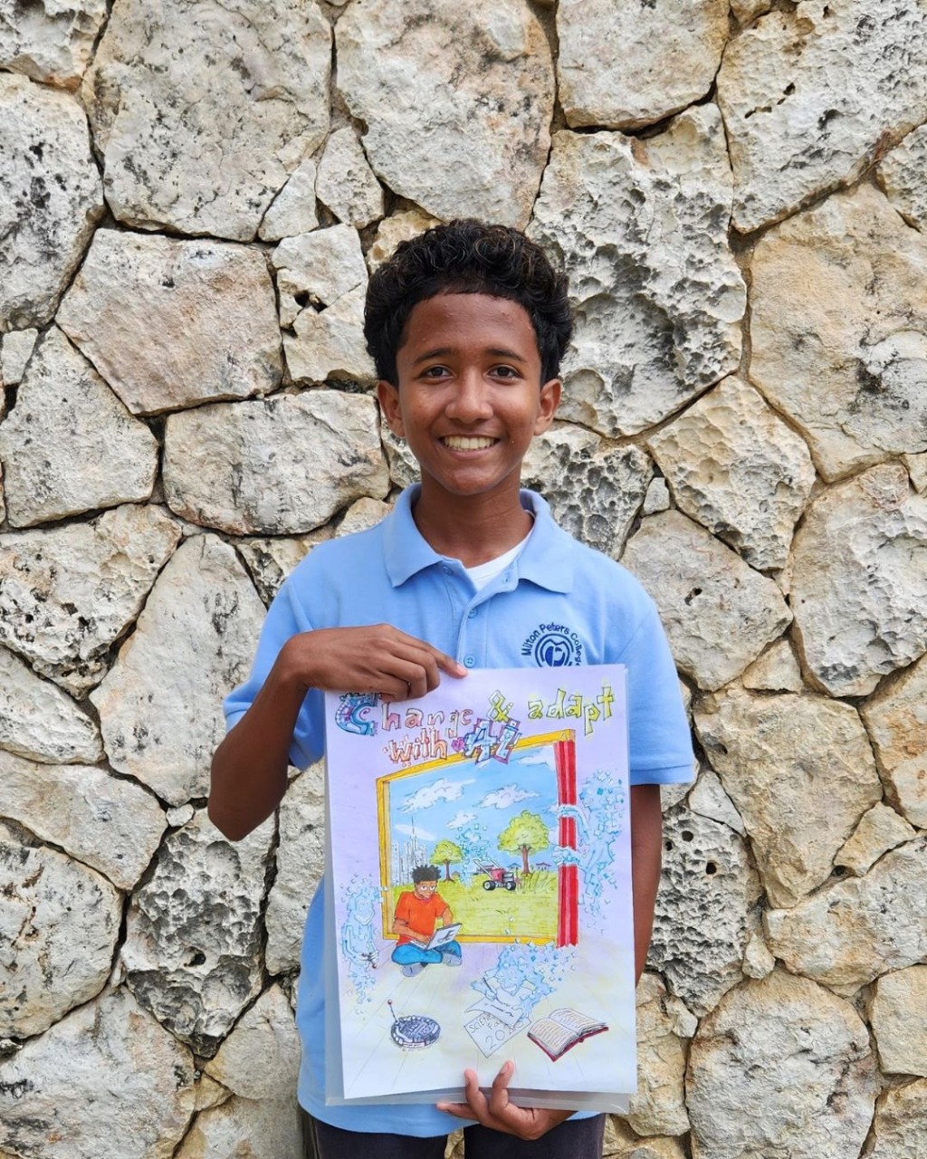 El cartel ganador, creado por Evan Amatdjais de The Milton Peters College (HAVO), se destacó entre las presentaciones de Sundial, Charlotte Brookson Academy, MPC HAVO / PKL / PBL, St. Maarten Academy