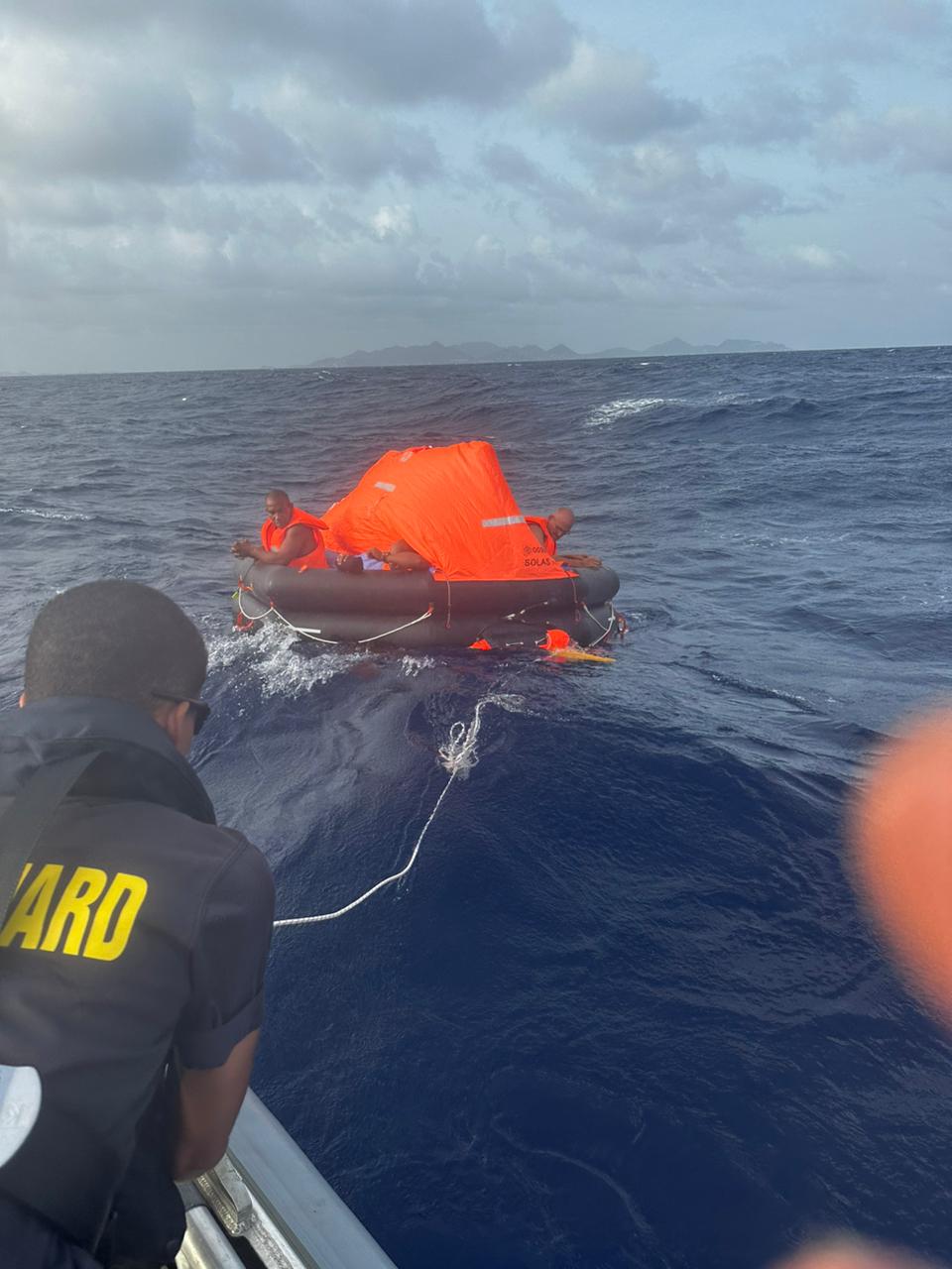 Durante la llamada, vieron que la patrullera de la Guardia Costera llegaba para brindar asistencia. Los tres hombres fueron trasladados a salvo a bordo del Metal Shark, que los llevó de regreso a Sint Maarten.