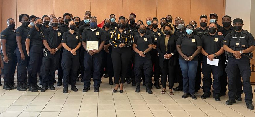 La oficial de aduanas Isha Marlin-Brown, quien ha estado trabajando en el departamento desde 2013, fue reconocida por la eficiencia demostrada en su trabajo. Durante los últimos tres años ha trabajado en una función de supervisión en la que no solo ha superado las expectativas como líder de turno, sino que también alienta a sus colegas a ser lo mejor y que puedan estar al día en las leyes relativas a las aduanas.