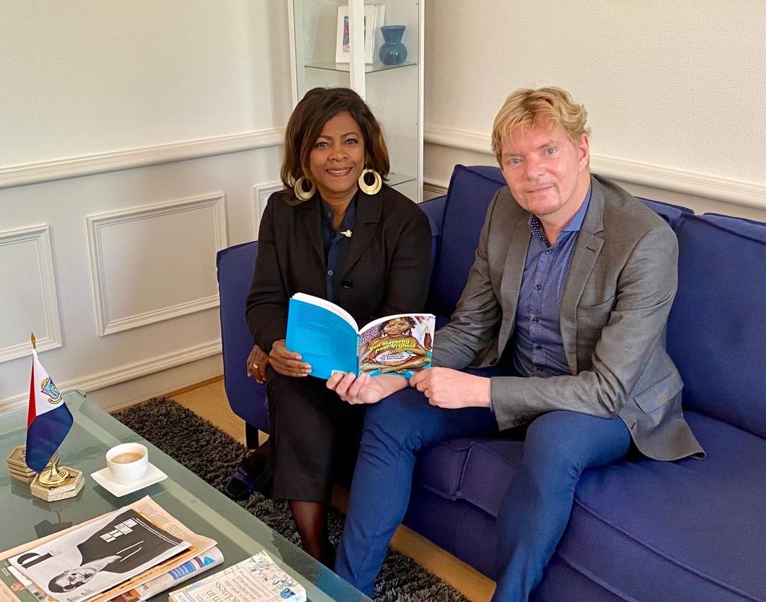 PAÍSES BAJOS (LA HAYA) – Viceministra Plenipotenciaria Dres. Gracita R. Arrindell marcó el final del Año Conmemorativo de la Esclavitud el día después de las celebraciones oficiales del Día de la Emancipación el 1ro de julio al recibir el libro recién publicado “De la esclavitud a la libertad” en su oficina de La Haya.