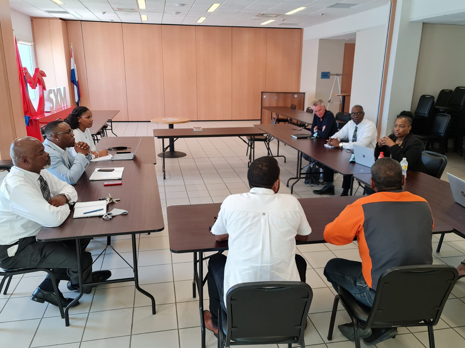 PHILIPSBURG, Sint Maarten – La Ministra de Justicia, Sra. Anna E. Richardson y el Ministro de Vivienda Pública, Ordenación del Territorio, Medio Ambiente e Infraestructura (en adelante, VROMI), Sr. Egbert Doran, llevaron a cabo una reunión para discutir las formas en que ambos ministerios pueden colaborar y coordinar las oportunidades de trabajo para los reclusos en la prisión de Point Blanche y House of Detention. Estuvieron presente durante reunión el Secretario General de Act y Jefe de Nuevos Proyectos el Sr. Kurt Ruan, El Jefe de Gestión de Infraestructura de Act el Sr. Charlon Pompier, El Jefe de Sección de Operaciones el Sr. Edelmiro Jansen, El Director de Prisiones el Sr. Steven Carty, El Gerente de Programa de Prisiones el Sr. Rob Kievitsbosch, y personal de apoyo. En los esfuerzos por ampliar los programas de rehabilitación y reinserción de los internos próximos a su fecha de liberación, se exploraron las posibilidades entre ambos ministros de relanzar un programa de trabajo interno.