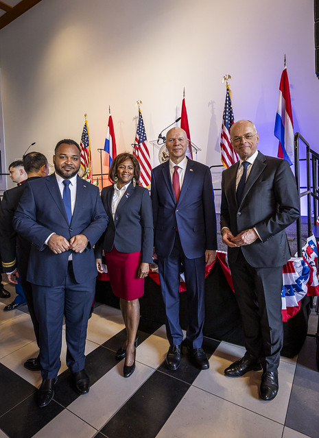 FOTO: Dras. Gracita R. Arrindell, Ministra Plenipotenciaria de Sint Maarten (segunda desde la izquierda), Encargado de Negocios de EE. UU., Marcus Micheli (tercero desde la izquierda).
