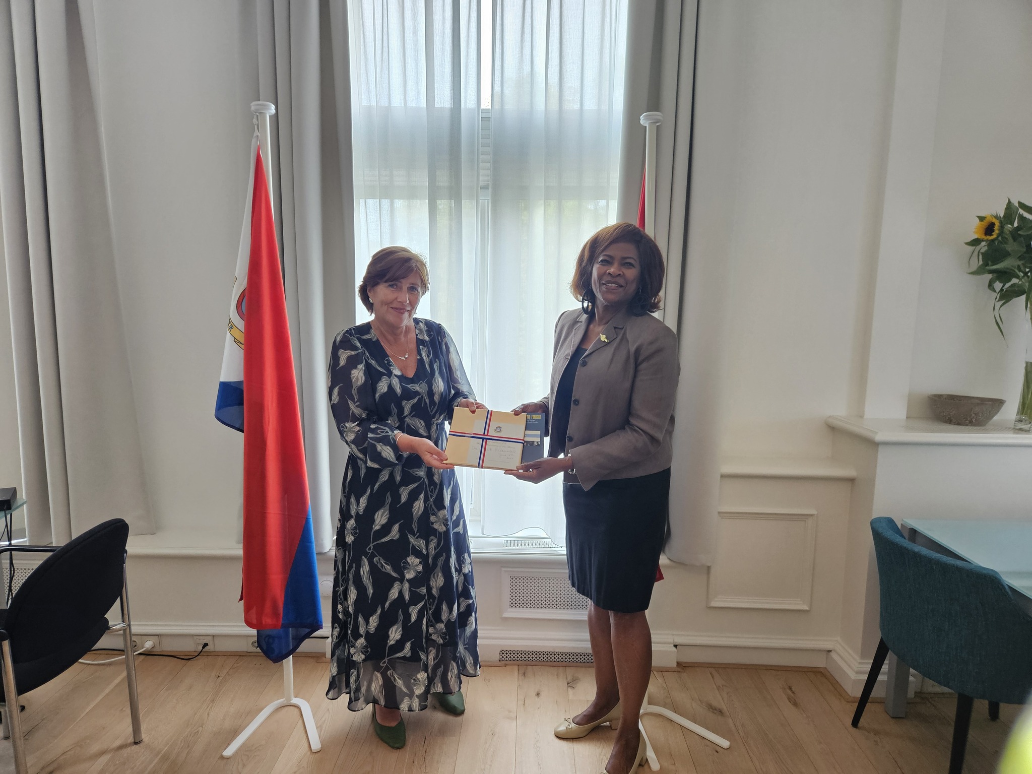 PAÍSES BAJOS (LA HAYA) – Recientemente, la Ministra Plenipotenciaria, Dra. Gracita R. Arrindell, recibió a la Dra. Ann Derwin, Embajadora de Irlanda en los Países Bajos.
