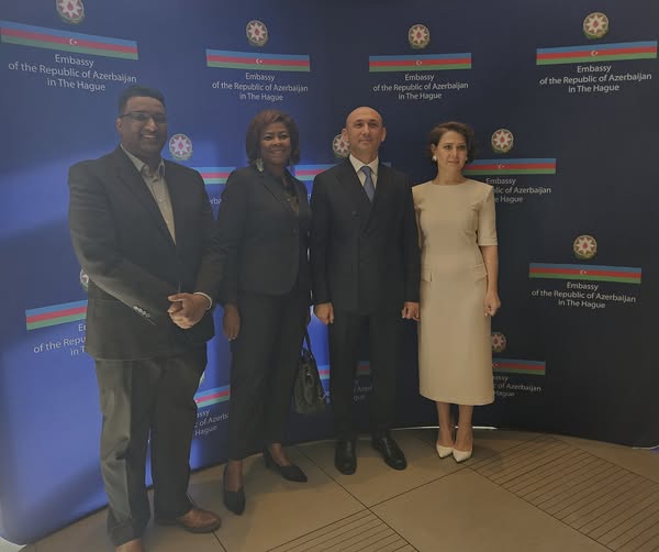 La Ministra Arrindell fue recibida calurosamente por Su Excelencia Mammad Ahmadzada, Embajador de Azerbaiyán ante el Reino de los Países Bajos, y su esposa, Aynura Huseynova.