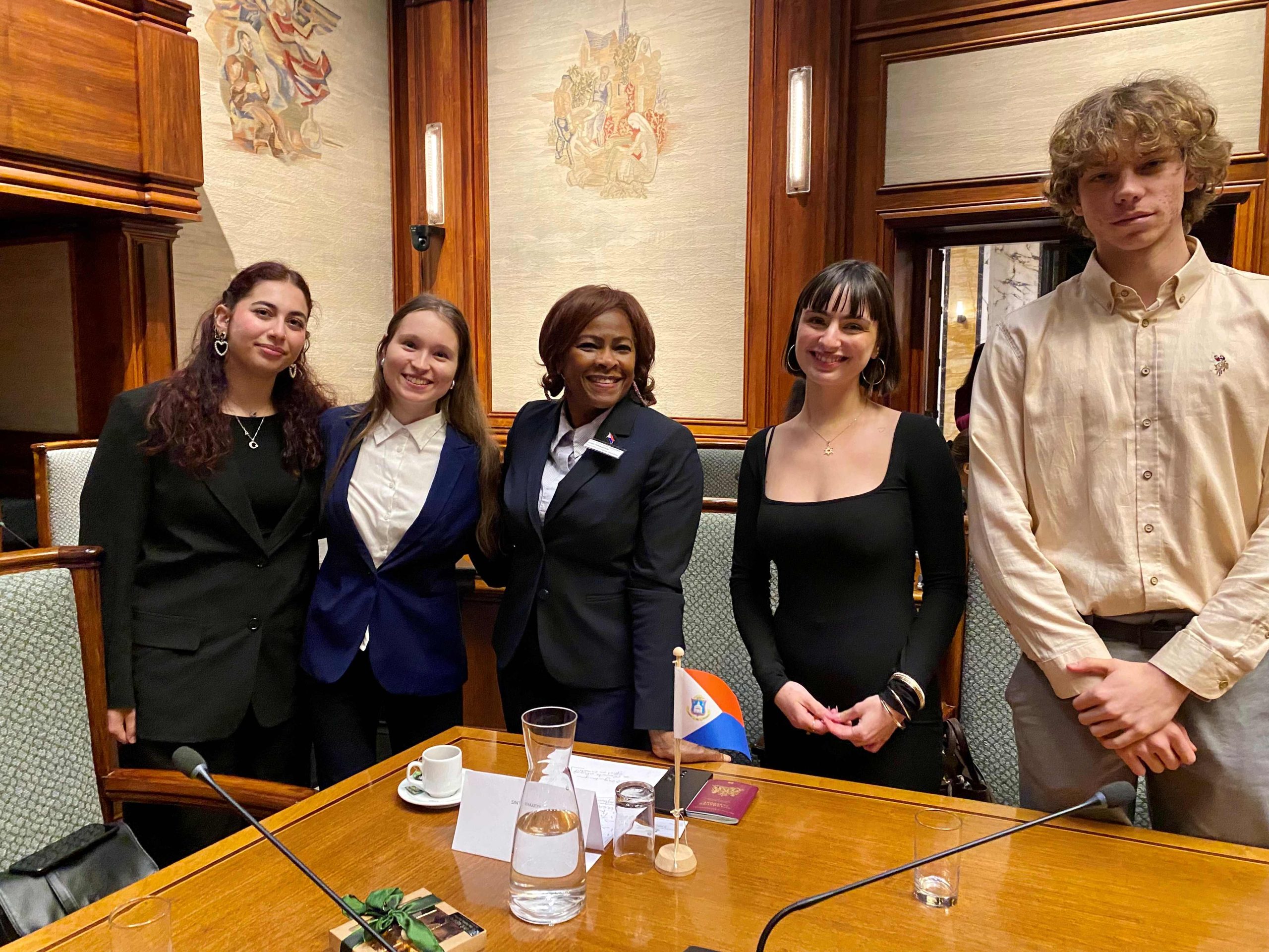La mesa de la Ministra Arrindell incluyó a estudiantes de Polonia, Alemania, Países Bajos, Finlandia, India, Estados Unidos, Hungría, Bulgaria y varios otros países, lo que refleja el carácter altamente internacional del evento.