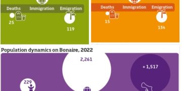 Caribbean Netherlands – El 1ro de enero de 2023, la población del Caribe Neerlandés era de 29,418. Esto es 1,692 (6 por ciento) más que un año antes. El aumento se debe en gran parte al crecimiento de la población en Bonaire, principalmente como resultado de la migración. En Saba, y en menor medida en St Eustatius, la población también creció debido al excedente migratorio. Así lo informa Estadísticas de los Países Bajos (CBS).