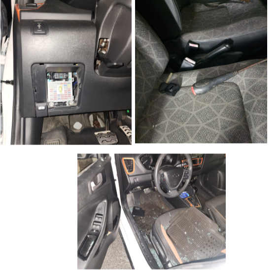 Luego de una búsqueda exhaustiva en el área, los oficiales detuvieron a dos hombres sospechosos identificados como A.A.A. y J.F.E. quienes estaban en el proceso de irrumpir en un pequeño automóvil blanco en el lugar especificado.