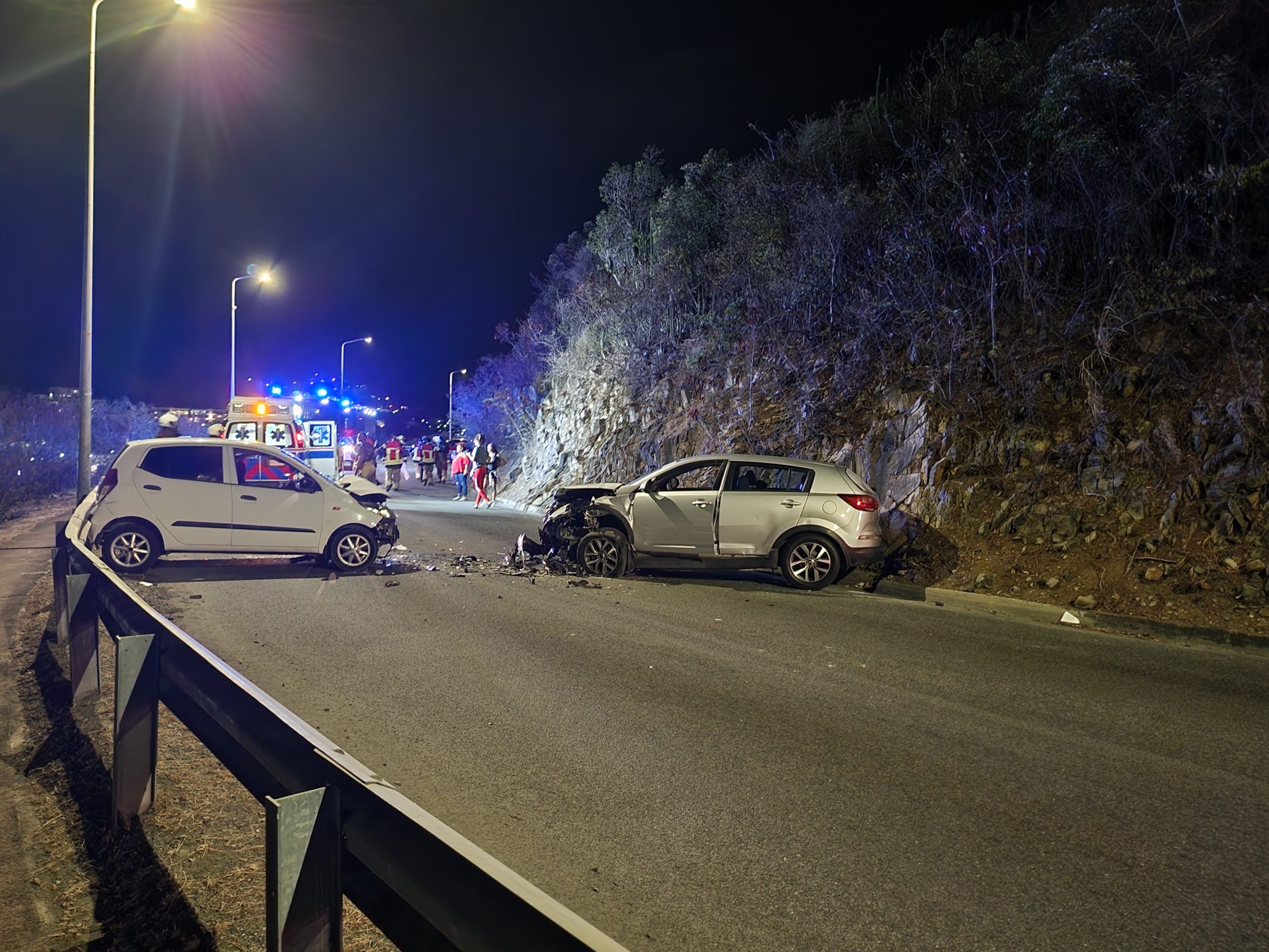 Poco después, aproximadamente a las 8:20pm, el centro de despacho recibió un reporte de otro accidente en el Eslabón 1, donde una de las víctimas quedó atrapada dentro de un vehículo. Los Bomberos, la Policía y el personal de ambulancia fueron enviados de inmediato al lugar. Los hallazgos preliminares indican que el conductor de un Hyundai blanco estaba ascendiendo la montaña hacia la rotonda en Indigo Bay, mientras que un SUV gris estaba descendiendo En cierto momento, el conductor del vehículo blanco perdió el control, lo que provocó un choque frontal con el SUV gris. El personal del Departamento de Bomberos logró sacar a la víctima del vehículo.