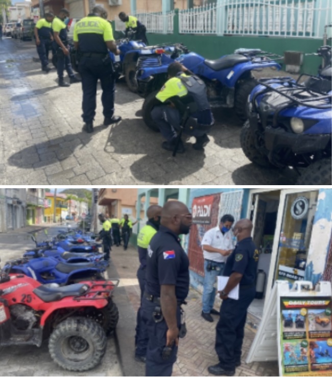 PHILIPSBURG, Sint Maarten – Un grupo de trabajo compuesto por miembros del Departamento de Inmigración, la policía (KPSM) y controladores del Departamento de TEATH realizaron otra ronda de controles en varios establecimientos ubicados en el centro de Philipsburg. Entre los negocios controlados se encontraba una empresa de alquiler de Quads ubicada en Front Street.
