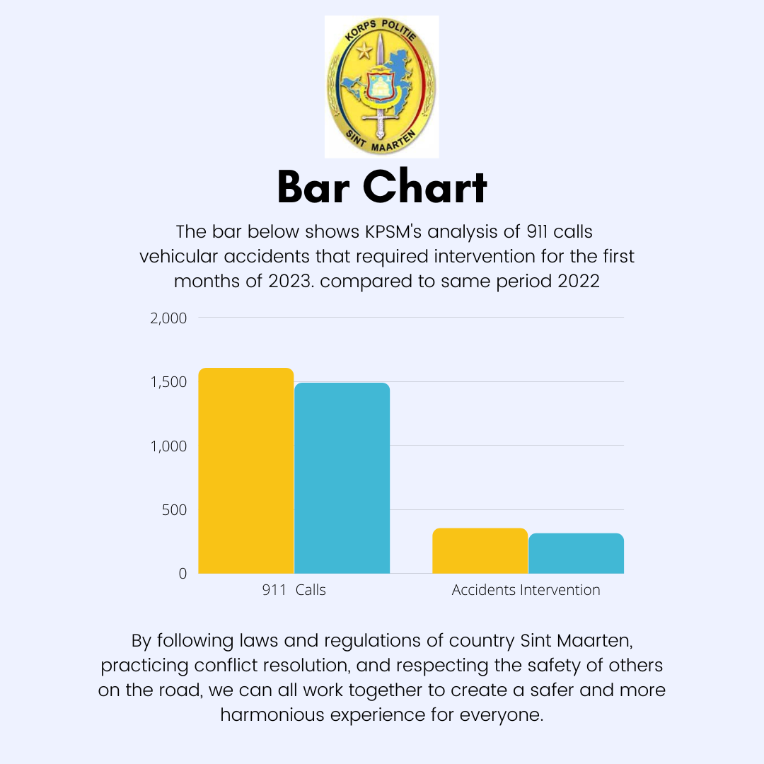PHILIPSBURG, Sint Maarten – La Policía de Sint Maarten KPSM realizó un análisis de incidentes, informes y accidentes vehiculares que requirieron intervención durante los primeros meses de 2023. KPSM también comparó las estadísticas recopiladas durante las primeras 11 semanas de este año con las de la