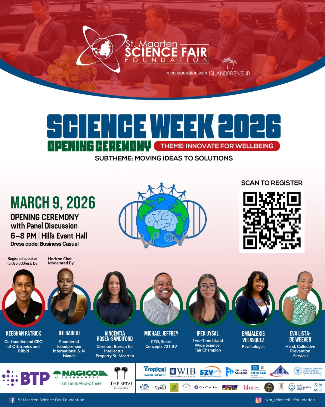 Philipsburg, St. Maarten – La Fundación de la Feria de Ciencias de Sint Maarten (SMSFF) se complace en anunciar el lanzamiento oficial de la Semana de la Ciencia 2026, que comenzará con una ceremonia de apertura y una mesa redonda el lunes 9 de marzo de 2026 en el Salón de Eventos Hills, de 6:00pm a 8:00pm.