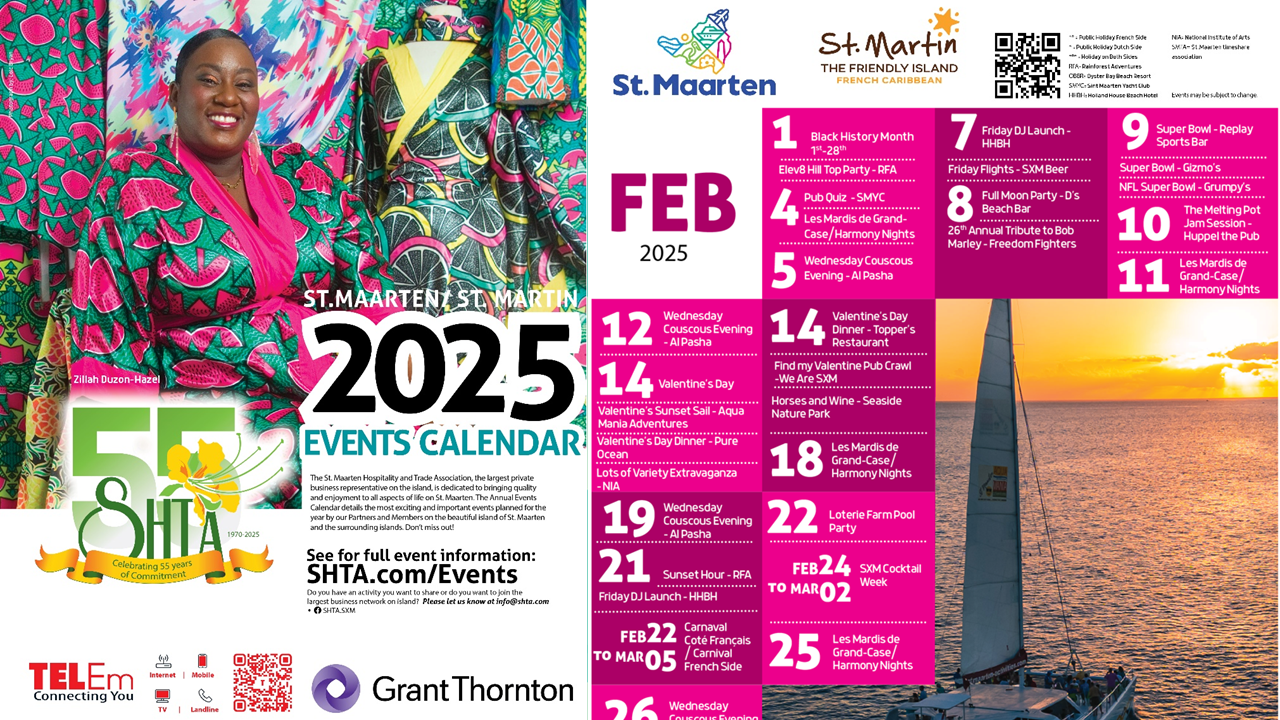 Philipsburg, Sint Maarten – Esta semana, la Asociación de Hotelería y Comercio de St. Maarten (SHTA) completó la distribución de la edición 2025 de su calendario anual de eventos. El calendario muestra una vibrante variedad de eventos y actividades durante todo el año, capturando la esencia de la riqueza cultural de la isla.