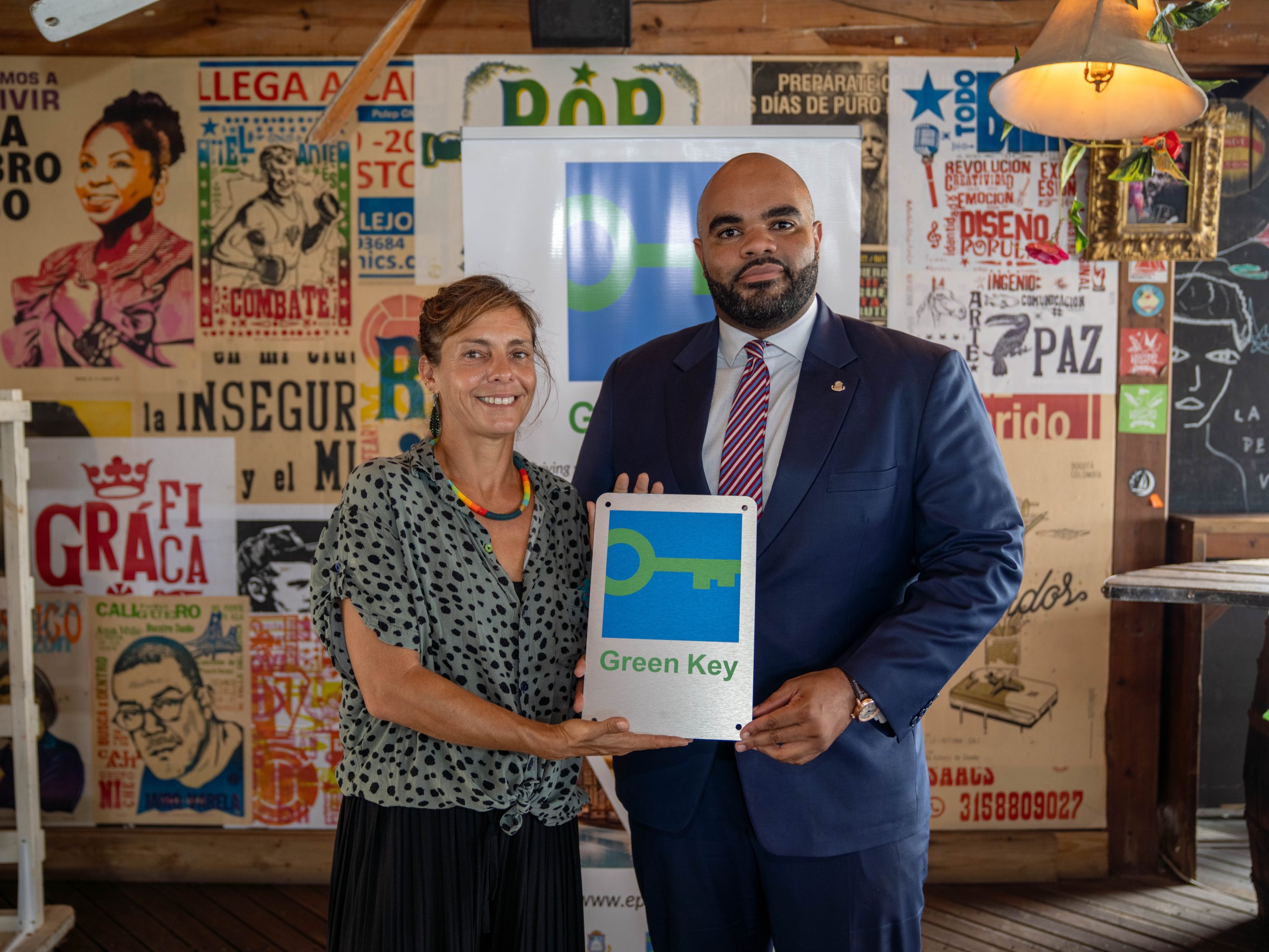 COLE BAY, St. Maarten – La Fundación para la Protección Ambiental del Caribe (EPIC) se enorgullece en anunciar un hito importante en turismo sostenible: la primera certificación Green Key en Sint Maarten ha sido otorgada oficialmente a Lagoonies Bistro & Bar (Lagoonies). Esta prestigiosa certificación, que representa la excelencia en operaciones ambientales y sostenibles dentro del sector hotelero, fue entregada formalmente por el Ministro de Vivienda Pública, Ordenación del Territorio, Medio Ambiente e Infraestructura (VROMI), Sr. Patrice Gumbs, a la Sra. Olivia Roudon, propietaria de Lagoonies, durante un evento celebrado el jueves 14 de agosto.