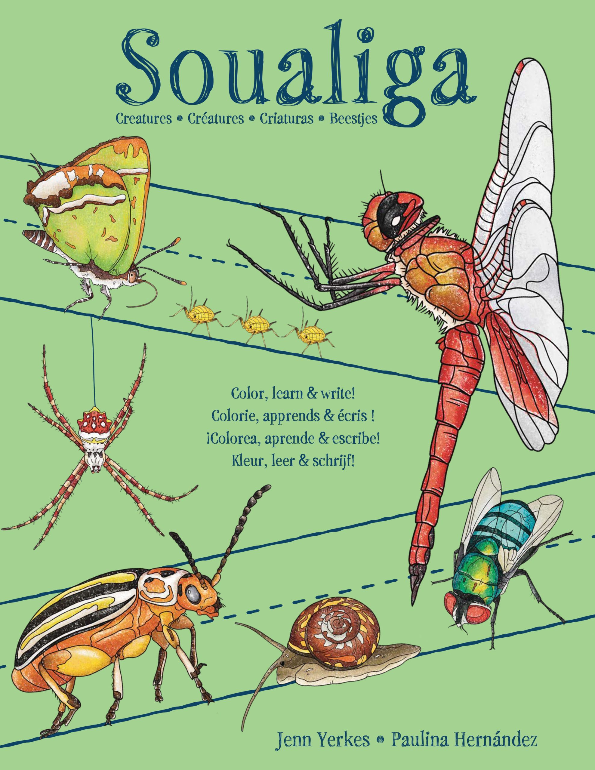 Soualiga Creatures está protagonizada por algunos de los asombrosos animales más pequeños de San Martín, especialmente los insectos. Es una gran mirada a los fascinantes pequeños bichos que vuelan, se arrastran, se deslizan y saltan en esta isla. Hay una guía visual en la contraportada con fotografías en colores vivos de todas las criaturas destacadas. Esto anima a los niños a aprender cómo son y a detectarlos en la naturaleza. En el interior, los niños encontrarán una página para colorear de cada criatura con su nombre en los cuatro idiomas. Cada uno también tiene una página donde pueden practicar escribiendo los nombres de la criatura.