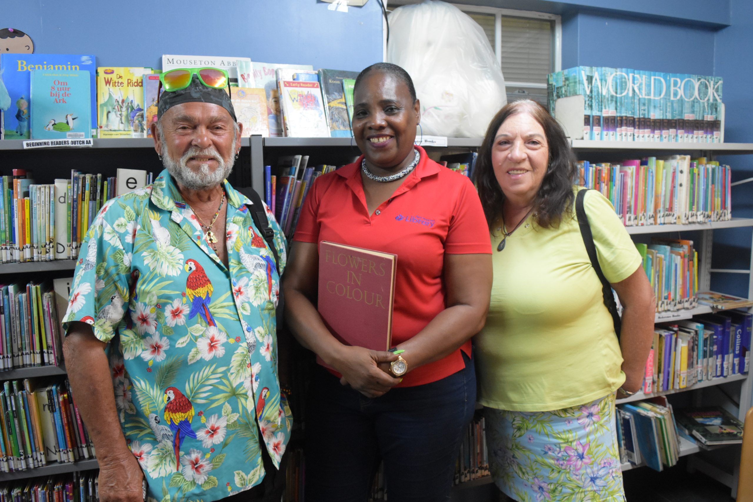 FOTO: De izquierda a derecha: Sr. W. Belinsky, Shirley Richardson, directora de adquisiciones de la biblioteca de Sint Maarten, y Sra. C. Belinsky.