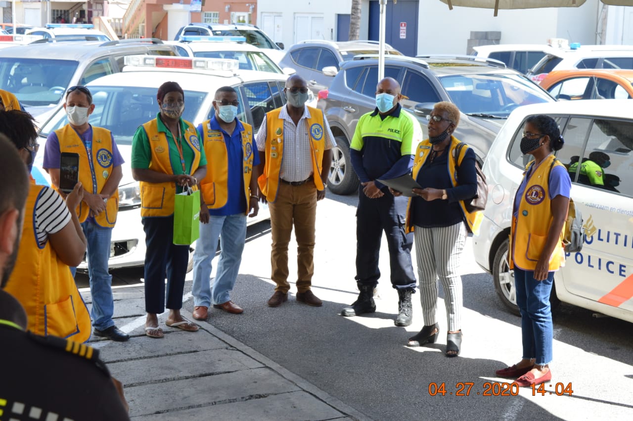 In the eyes of the members of the Sint Maarten Lions and Leo Clubs, this great humanitarian community assistance cannot go unnoticed, and decided to express their appreciation. Lions Club President Oralie Boirard along with members of the Lions Club presented a Framed Certificate of Appreciation to the Police Chief Carl John on behalf of the Sint Maarten Lions and Leo Clubs. This took place at the Police Station in Philipsburg on Monday April 27, 2020.