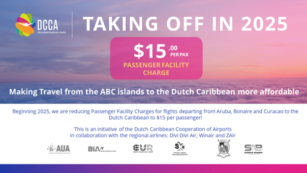Dutch Caribbean – La Cooperación de Aeropuertos del Caribe Holandés (DCCA) se enorgullece de anunciar una iniciativa innovadora para reducir las tarifas de instalaciones para pasajeros (PFC) para los viajes entre islas desde las Islas ABC (Aruba, Bonaire, Curaçao) al Caribe holandés. Este esfuerzo está diseñado para fortalecer aún más la conectividad regional, haciendo que los viajes sean más asequibles para los residentes y visitantes en el Caribe holandés.