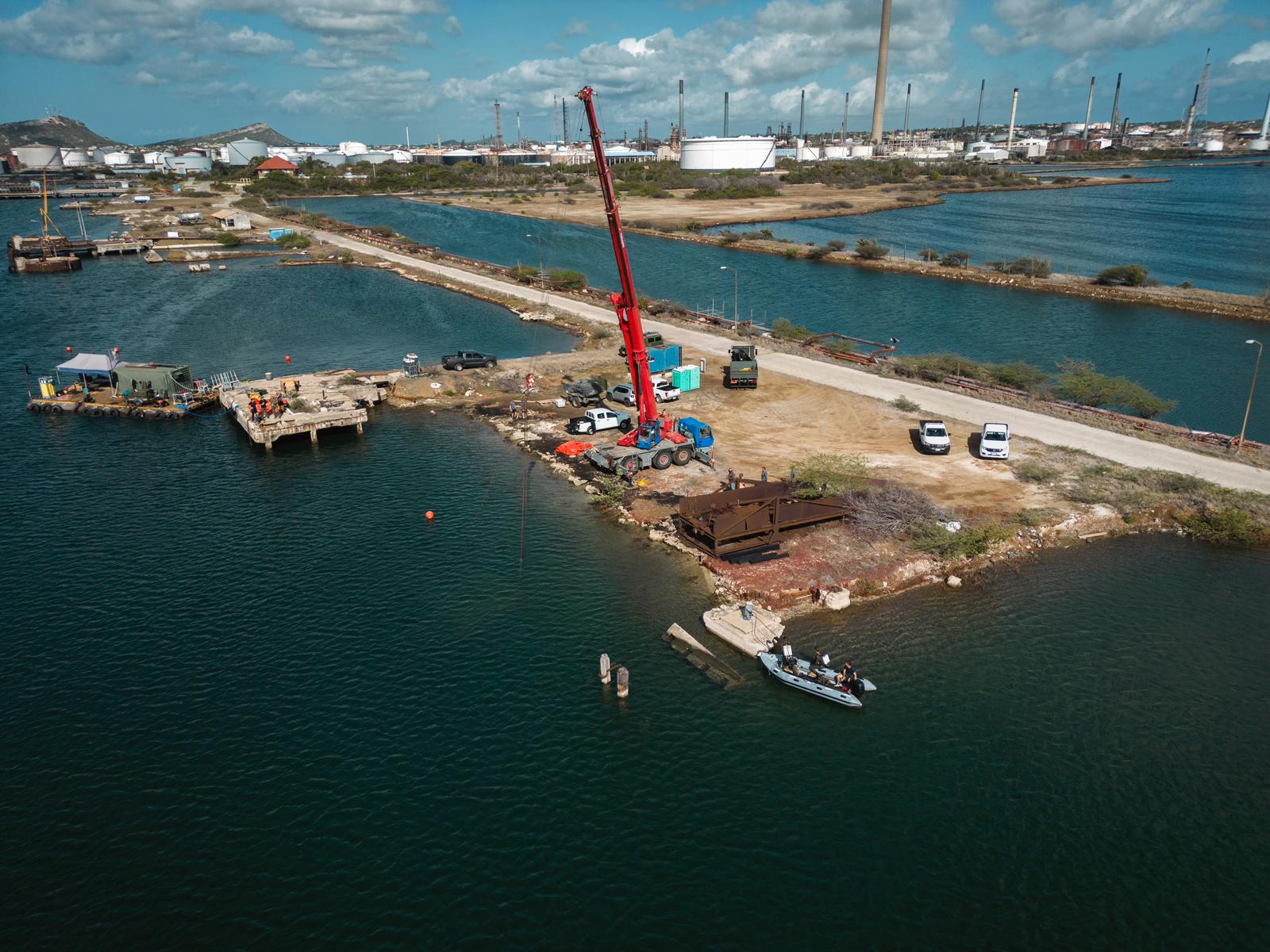 Los buzos de la marina, que vinieron a Curaçao para entrenar diversas habilidades de buceo, decidieron combinar un ejercicio con una contribución a la sociedad. Comenzaron la operación el año pasado, pero pronto quedó claro que se necesitaban herramientas más pesadas debido a condiciones submarinas imprevistas para completar la tarea. Este año regresaron mejor preparados con el equipo y la experiencia adecuados.