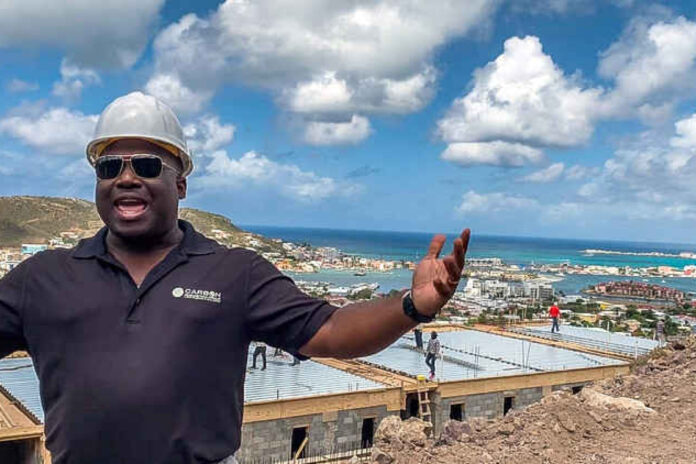 Dwain Carbon, propietario de Carbon Acquisition Group, en el sitio de construcción de Carbon Grove Residences en Cole Bay, un proyecto que permanece inacabado hasta la fecha.