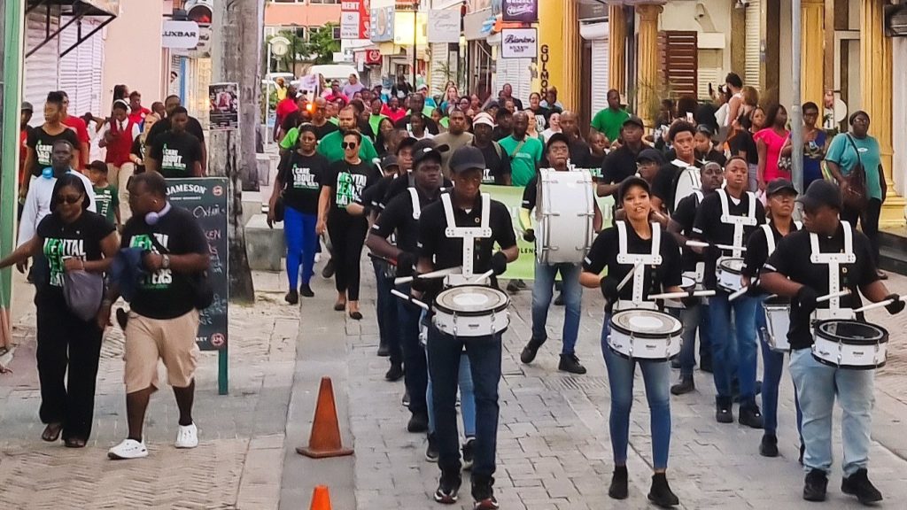 CAY HILL, St. Maarten – Una gran multitud de participantes marchó en solidaridad el jueves 13 de noviembre por FrontStreet en una Marcha de Concientización sobre la Salud Mental organizada por la Fundación de Salud Mental (MHF).