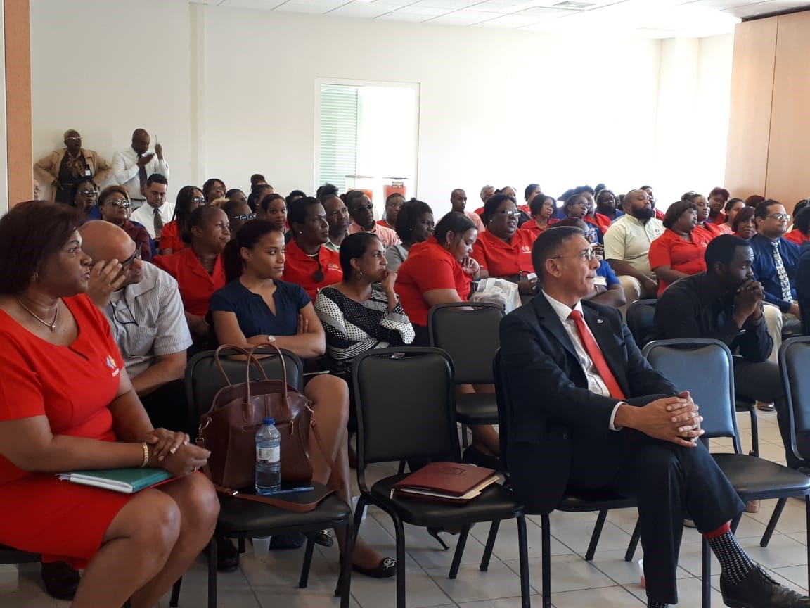 “Since 10-10-10 the Tax Department faced many challenges. Unfortunately, we were not given the priority and resources to meet these challenges, like hiring the right staff, investing in the right technology, retooling and training our staff. This lack of investments ultimately affected our ability to give good service to our taxpayers and resulted in delays, backlogs and arrears. With this transformation plan we can finally invest in the improvement of the heart of government, the Tax Department,” said Sherry Hazel, Head of the Tax Department during the presentation to the staff.