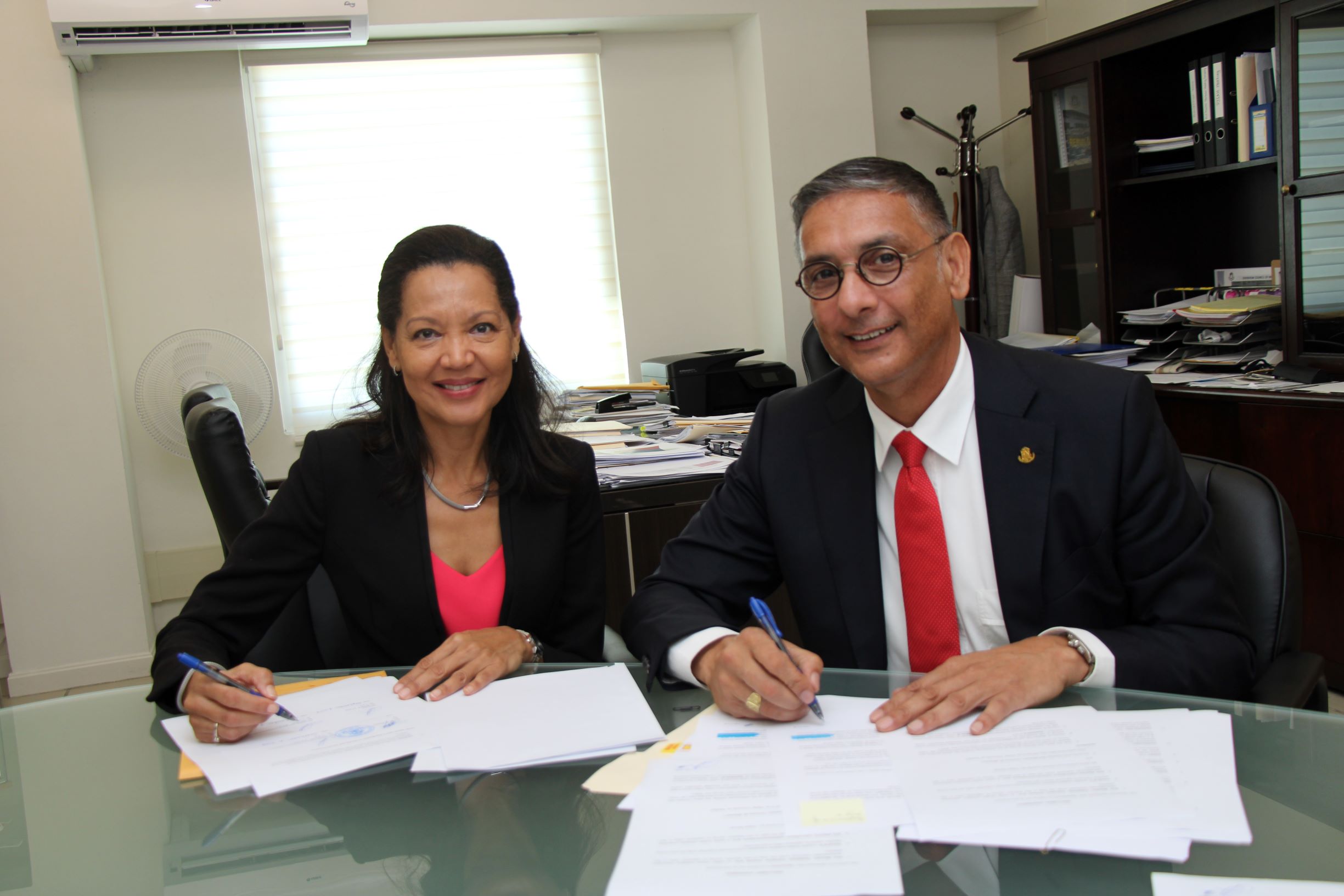 PHOTO CUTLINE: L to R: TelEm Chief Financial Officer Helma Etnel and Minister of Finance Hon. Perry Geerlings.