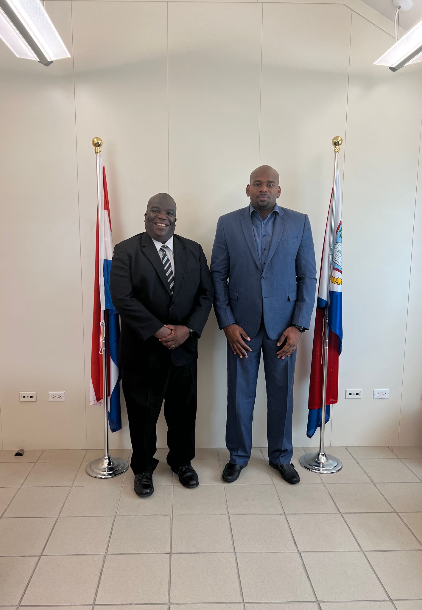 PHILIPSBURG, Sint Maarten – El Honorable Ministro de Salud Pública, Desarrollo Social y Trabajo, Sr. Omar Ottley, se reunió con el Director del Equipo de Trabajo Decente y Oficina para el Caribe de la Organización Internacional del Trabajo (OIT), Sr. Dennis Zulu, durante una reciente visita de cortesía a Sint Marten.
