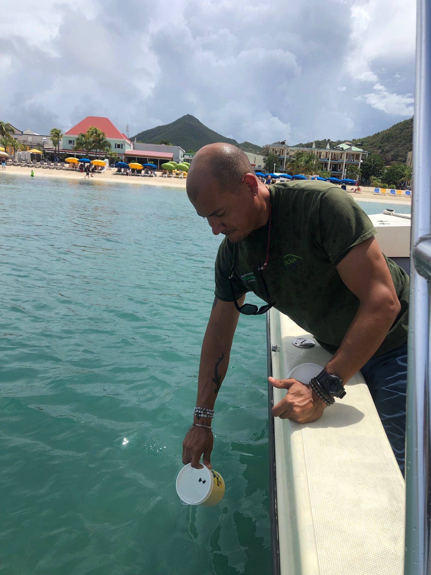 GREAT BAY, Sint Maarten – The Sint Maarten Nature Foundation on Tuesday tested water quality in the Great Bay Beach area after the heavy rains of Monday. As a part of the response to the heavy rainfall water from the Great Salt Pond was allowed to flow into Great Bay Harbor. “It is important after these heavy rain events that water quality is checked to see if there is no contamination in swimming areas. Considering the water quality of the Great Salt Pond we thought it prudent to take a water sample so that we can give recommendations on any concerns which may exist after Monday’s heavy rainfall,” commented Nature Foundation Manager Tadzio Bervoets.