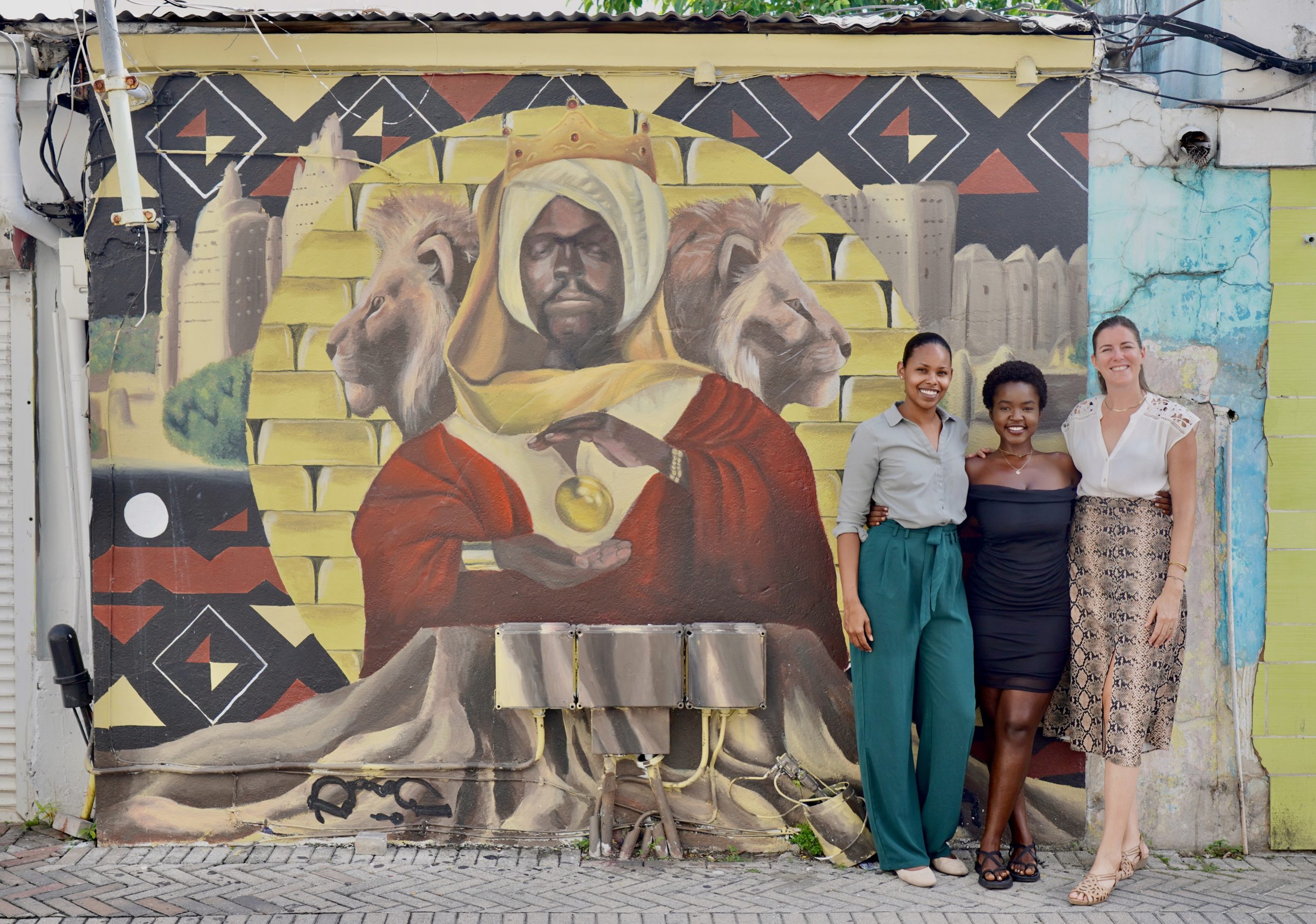 FOTO: De izquierda a derecha: la presidenta de la Fundación Be The Change (BTC), Melanie Choisy, la artista Bernica Michel y la coordinadora del proyecto BTC, Laura Bijnsdorp.