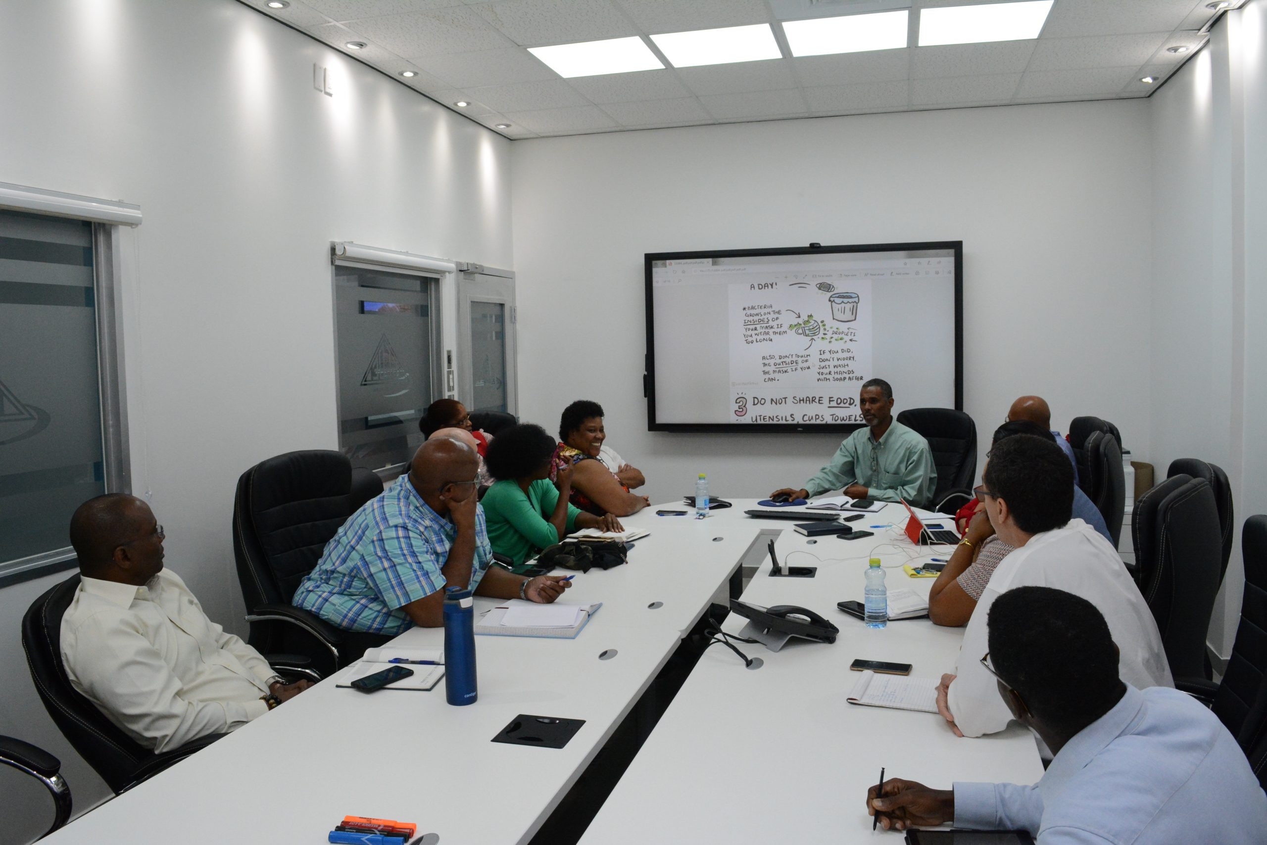 PHILIPSBURG, Sint Maarten – NV GEBE met with its Management Team on, Monday, February 2, 2020, to the beef up its measures towards the COVID 19 (Corona Virus). The company took its first measures a few weeks ago by placing hand sanitizing stations at every point of entry for its customers and also thought-out the company for the employees. Employees were encouraged to wash their hands regularly.