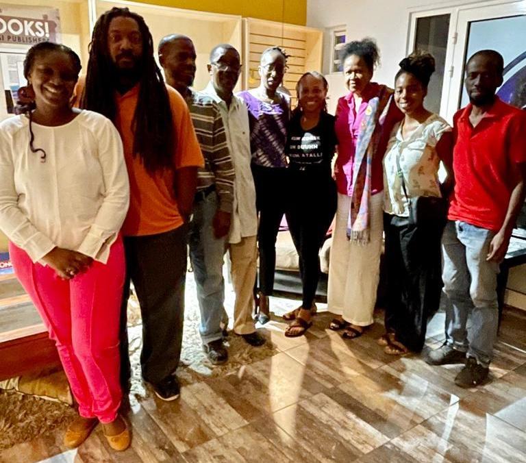 Leyenda: Uno de los miembros de SXM con la Dra. June Soomer después de la reunión. De izquierda a derecha: Aishira Cicilia, Bakari Arrindell, Gabriel LeBlanc, Theophilus Thompson, Soshina Stephen, Dra. Rhoda Arrindell, Dra. June