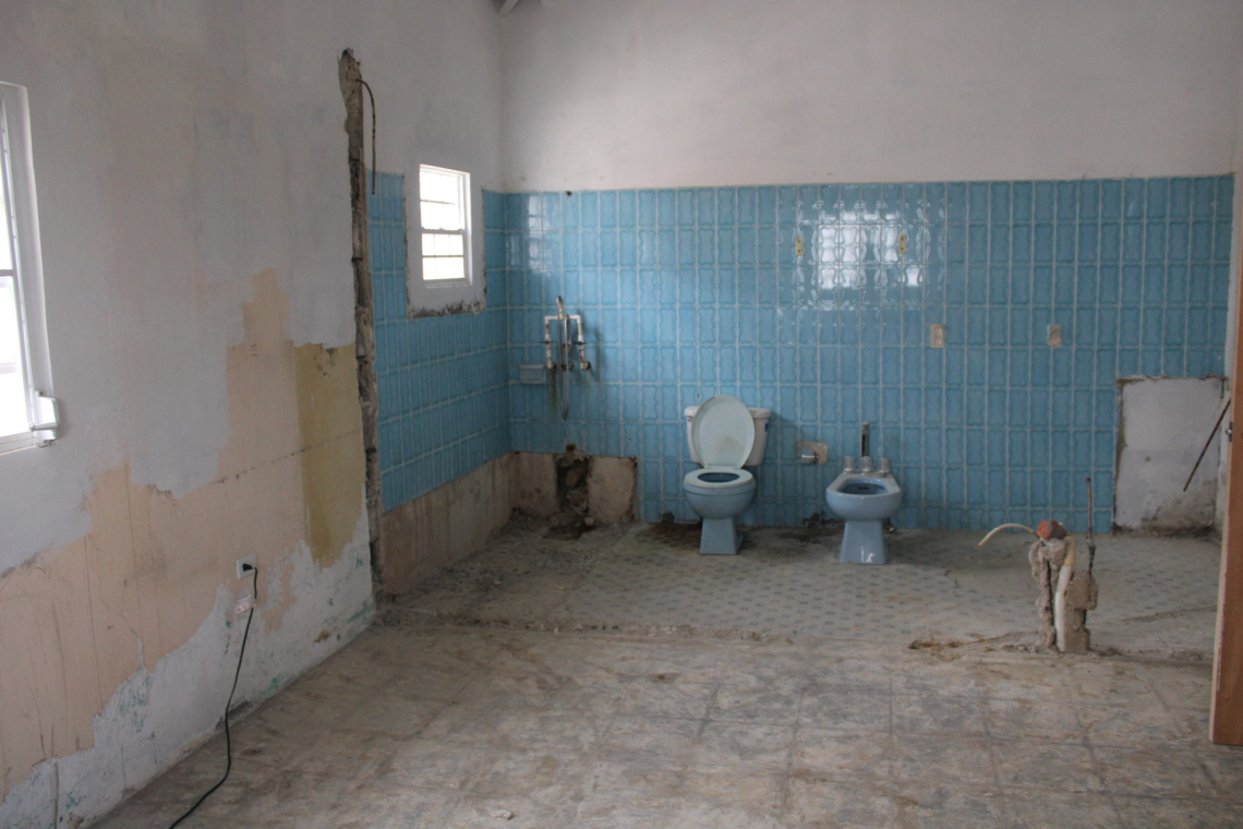 A su regreso, a mediados de noviembre, los trabajadores comenzaron a romper las paredes de los dormitorios y uno de los baños, y luego reanudaron el trabajo en el techo. La madera contrachapada recién colocada permaneció expuesta a los elementos durante la temporada de lluvias. Sin haber colocado zinc en el techo, los trabajadores partieron para su descanso navideño.