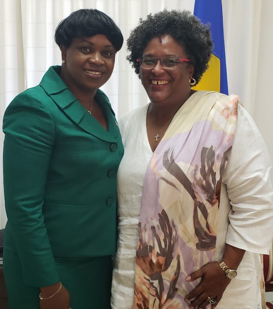 BRIDGETOWN, BARBADOS – While in Barbados on a working visit, attending the 2019 Understanding Risk (UR) Caribbean Conference, Prime Minister Leona Romeo-Marlin paid a courtesy visit to Prime Minister of Barbados Mia Mottley.  Mia Amor Mottley became Barbados’ eighth and first female Prime Minister on May 25, 2018. Prime Minister Mottley also serves as Minister of Finance, Economic Affairs, Investment, Minister of National Security, and the Civil Service.
