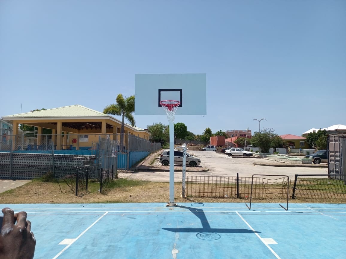 The National Sports Institute started the repairs over the weekend with the replacement of the posts, backboard, and rims at the court outside of the Leonard Conner School in Cay Bay/Cole Bay and the court outside the Sister Regina school in Simpson bay. The children in the neighborhood were more than happy to see their community court being repaired and were found playing basketball once the baskets were installed.