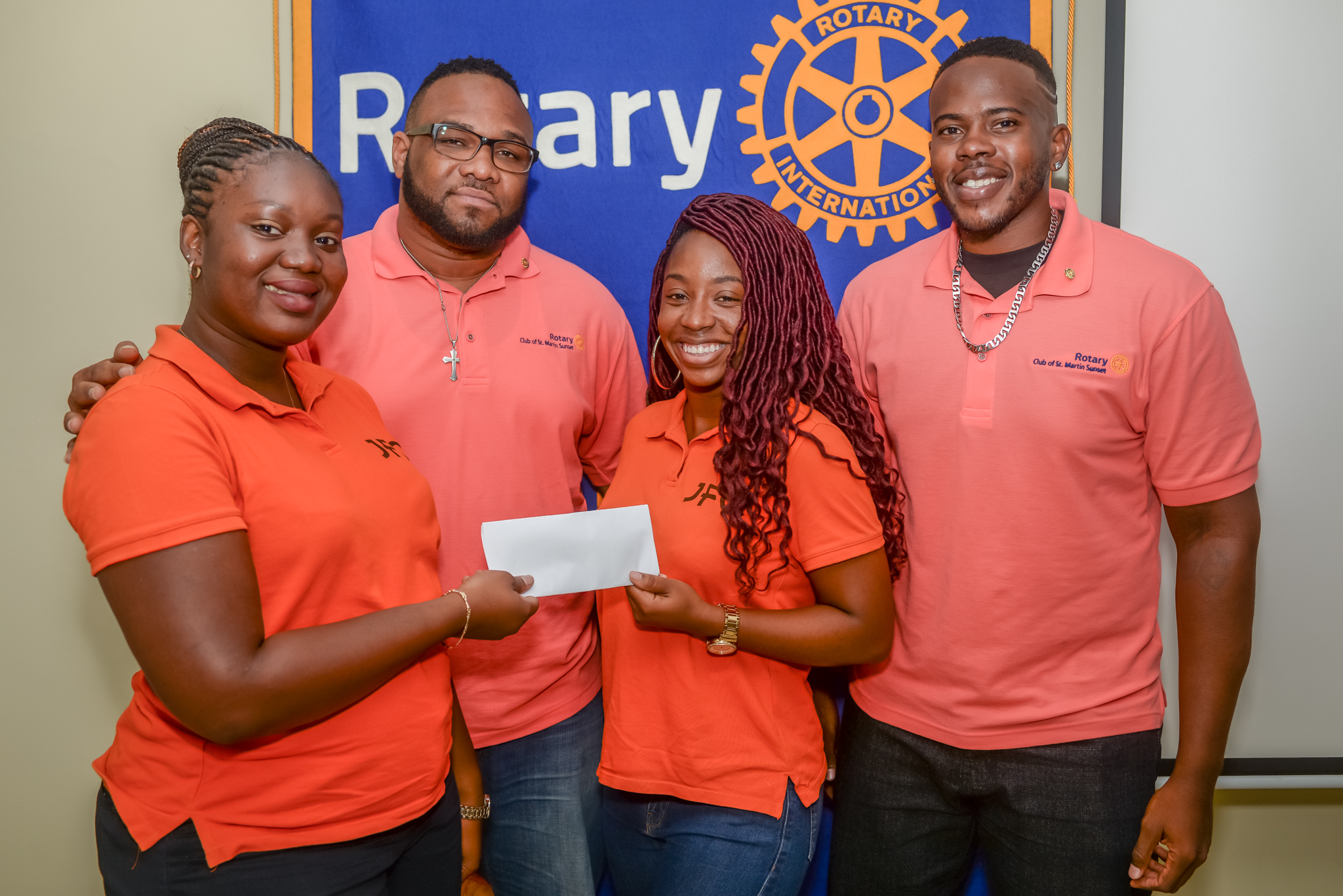 COLE BAY, Sint Maarten – On Monday, May 10, the Rotary Club of St. Martin Sunset presented Ms. Idryssa Gumbs and Christoline Theodore of Jmix and Friends Corporation (JFC) Jeunesse Soualiga with a monetary donation towards the annual prom evening. Ms. Gumbs, who is the event coordinator, approached the club for the sponsorship of their annual event.