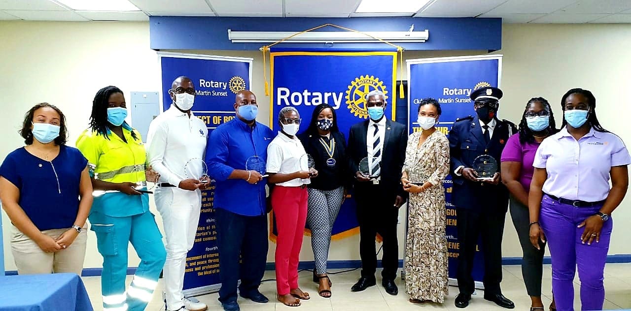 ICOLE BAY, Sint Maarten – On January 25, the Rotary Club of St. Martin Sunset awarded 8 Essential Workers’ departments for their outstanding contributions to the community through their vocation and for exemplifying the Rotary ideal of “Service Above Self.” These departments have proven to continuously make sacrifices on a daily basis to ensure that our safety and wellbeing are met.