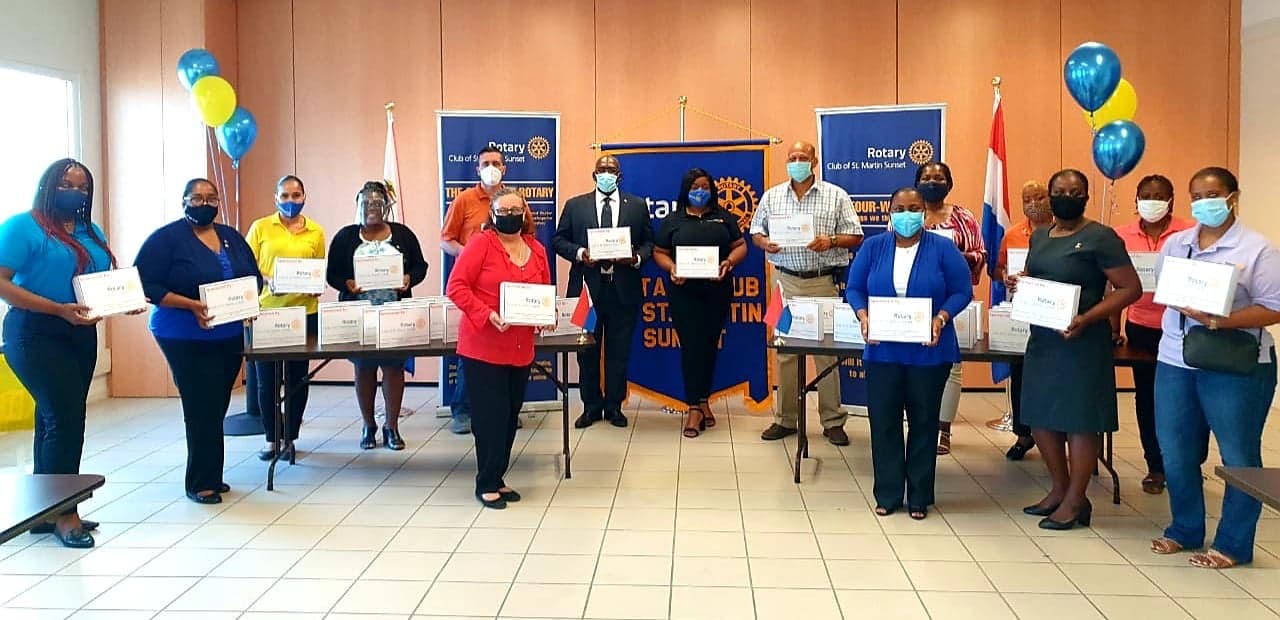 The Rotary Club of St. Martin Sunset would like to extend its heartfelt gratitude to the general population of St. Maarten and to Rotarians across the globe for their kind contributions towards this initiative. There are still 133 students from various public schools who lack an electronic device to be able to attend classes. Persons who are still interested in contributing can do so by making a deposit to the club’s WIB USD Account number- 82173909, WIB NAF Account number-82173806.