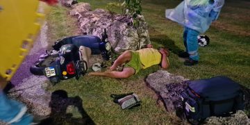 According to the preliminary investigation, the rider with the initials C.M. was traveling in the direction of Cupecoy when for reasons still unknown, lost control and collided with one of the large stones on the side of the road. As a result of the collision, the rider suffered severe lacerations to his face. He was treated at the scene by the personnel of the ambulance and later rushed to Sint Maarten Medical Center(SMMC) for further treatment.