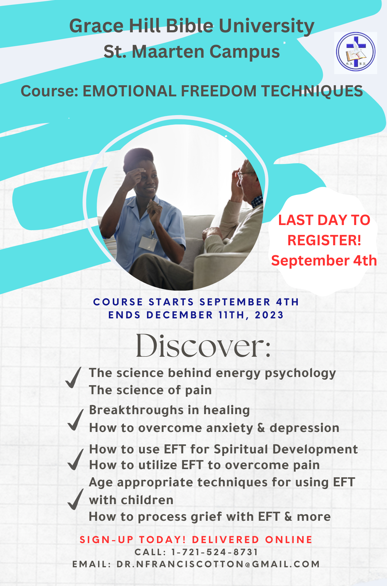 Francis-Cotton, quien también desarrolló conjuntamente el plan de estudios de Consejería de duelo para el programa BSC en Trabajo Social de la Universidad de las Indias Occidentales, reconoce la importancia de proporcionar herramientas prácticas y basadas en evidencia para que los consejeros ayuden eficazmente a sus clientes a sanar. Por lo tanto, como parte del plan de estudios del campus de GHBU St. Maarten, los estudiantes aprenden los fundamentos de las técnicas de libertad emocional en el asesoramiento, que aprovechan el sistema energético del cuerpo.
