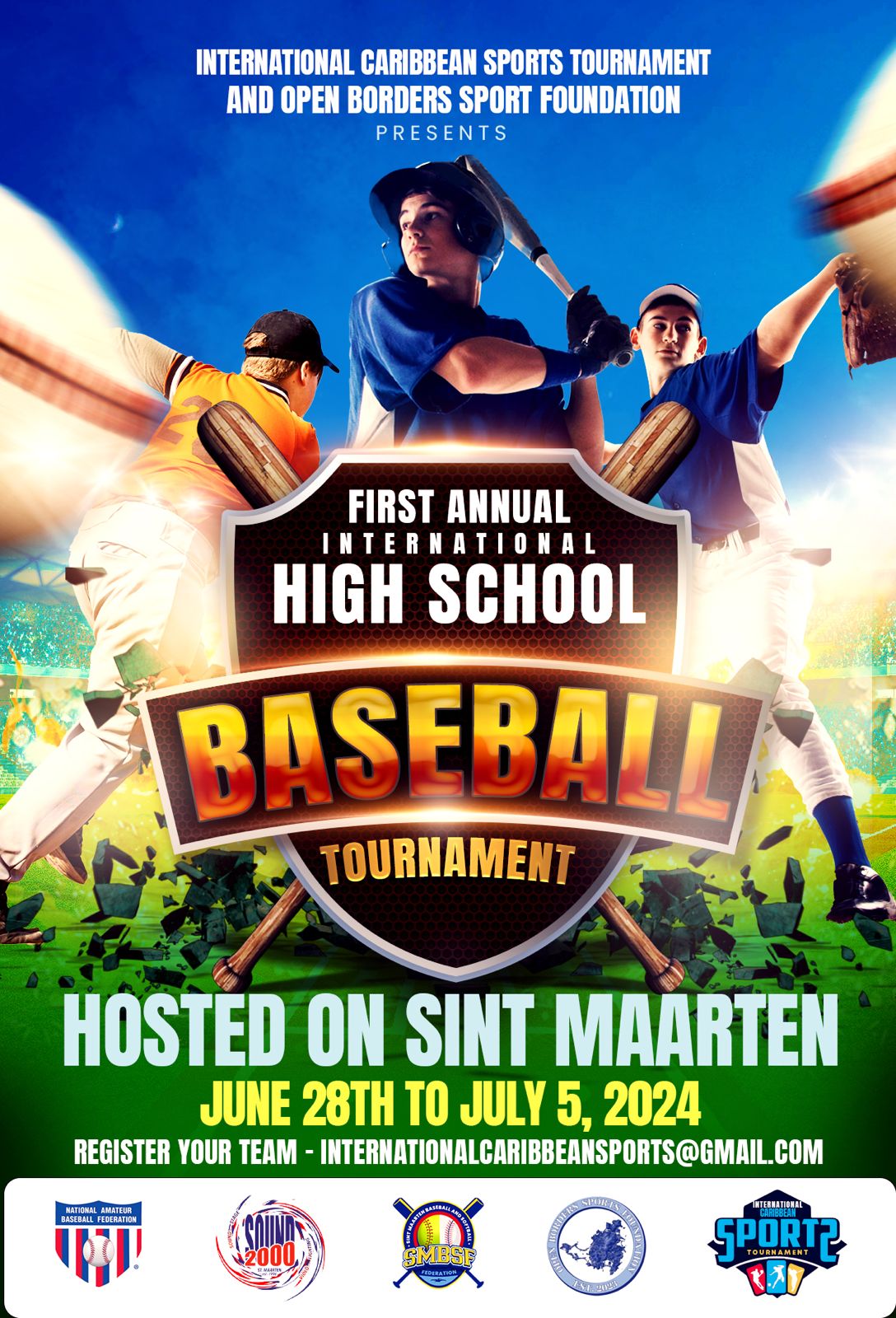 PHILIPSBURG, Sint Maarten – El Torneo Internacional de Deportes del Caribe (ICST), en colaboración con Open Borders Sports Foundation (OBSF), la Federación Nacional de Béisbol Amateur (NABF) y la Federación de Béisbol y Softbol de Sint Maarten (SMBSF), se reunió en una trascendental conferencia de prensa el viernes 17 de noviembre de 2023 para presentar un anuncio emocionante. Presentaron con orgullo el inicio del Primer Torneo Clásico Internacional Anual de Béisbol de Escuelas Secundarias.