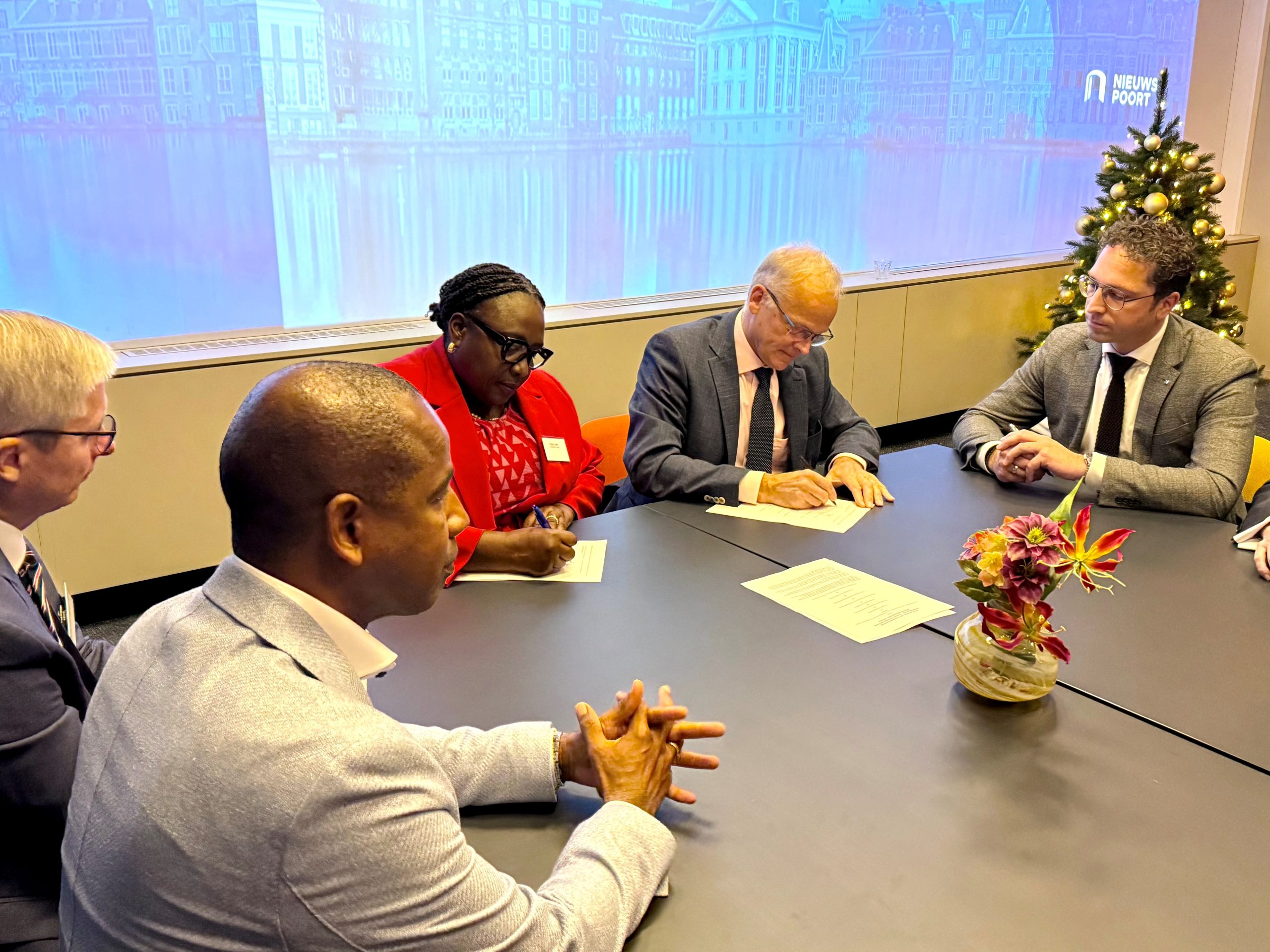 En representación de las asociaciones profesionales, Jeroen van Gool de la Asociación de Concejales, Abdullah Uysal de la Asociación de Concejales, Arnout van Kooij de la Asociación de Secretarios, Hilde Westera de la Asociación Holandesa de Alcaldes y Esther Sommer de la Asociación de Secretarios Municipales firmaron el acuerdo.