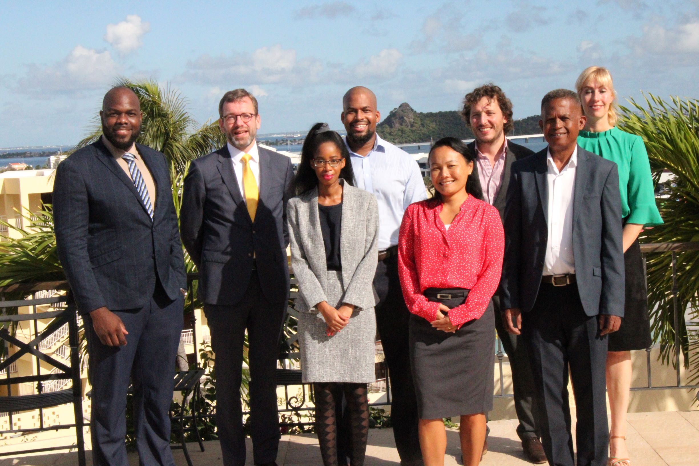 PHOTO CUTLINE: L to R – Djurick Comenentia (Curacao), Henk-Martijn Breunese (Netherlands), Caroline Gibbes (AWOK Secretary Sint Maarten), Carlos Guiamo (Aruba), Jennifer Fer (Curacao), Jan Willem van Rossem (Netherlands), Gilbert de Windt (Legislative Lawyer Sint Maarten) and Marja Strootman (Netherlands).