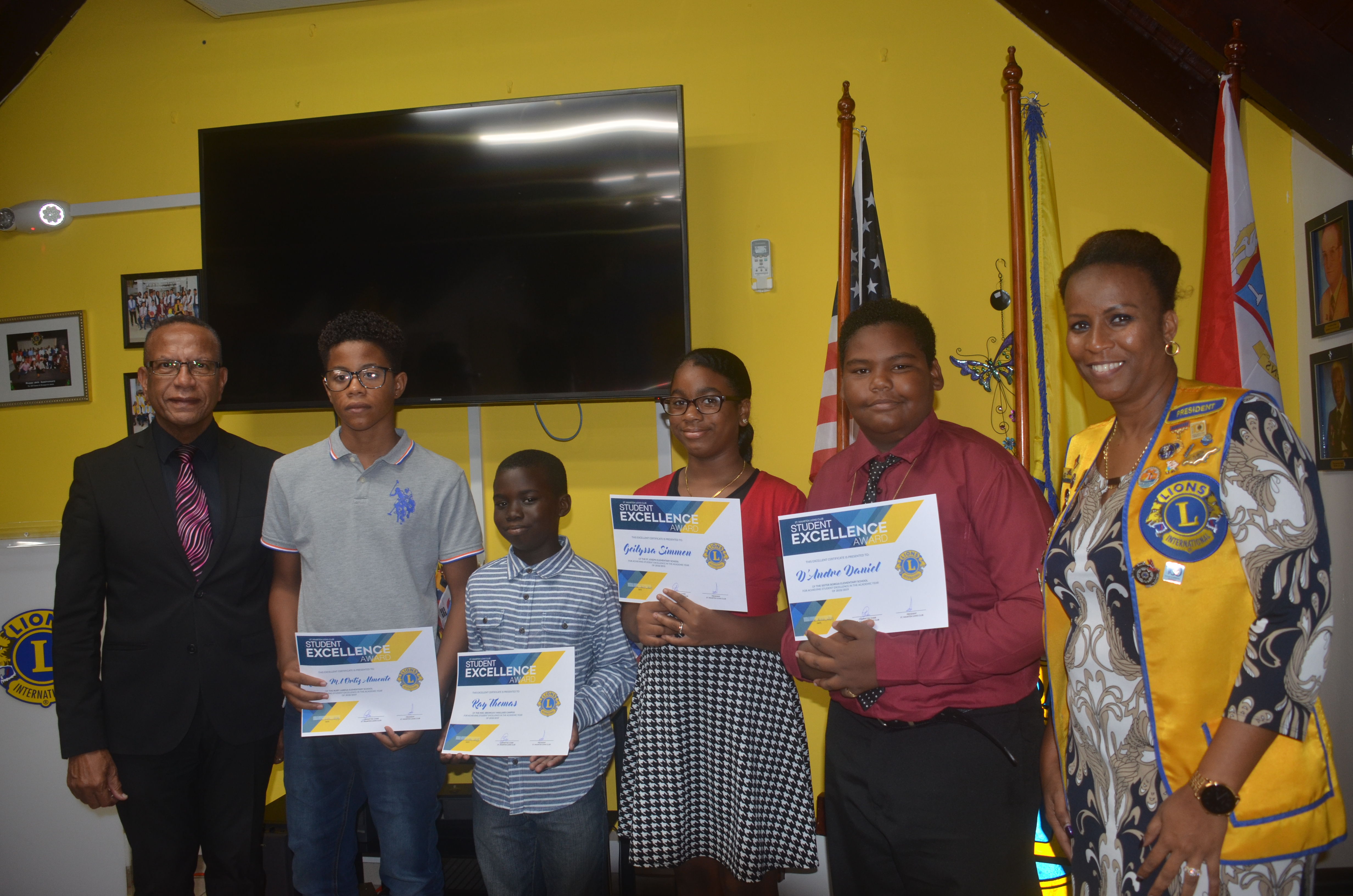 PHILIPSBURG, Sint Maarten – Sint Maarten Lions Club awarded four cycle 2 – group 8 primary schools students for the Student Excellent Award(SEA) project for 2018-2019.