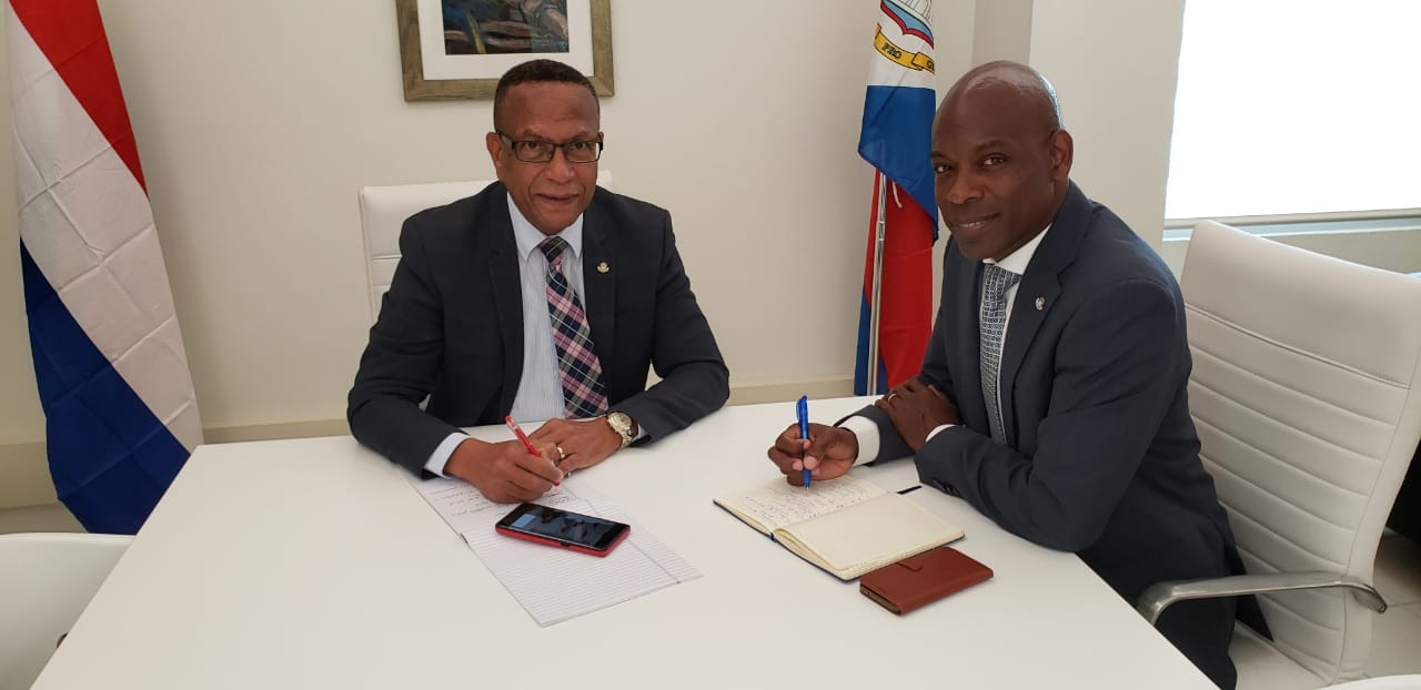 PHILIPSBURG, Sint Maarten – Minister Wycliffe Smith and Deputy Minister Plenipotentiary Michael Somersall met on Tuesday, August 6 to discuss how the Ministry of Education, Culture, Youth & Sport and the Cabinet of the Minister Plenipotentiary can work closer together to support all the Sint Maarten students currently studying in The Netherlands.