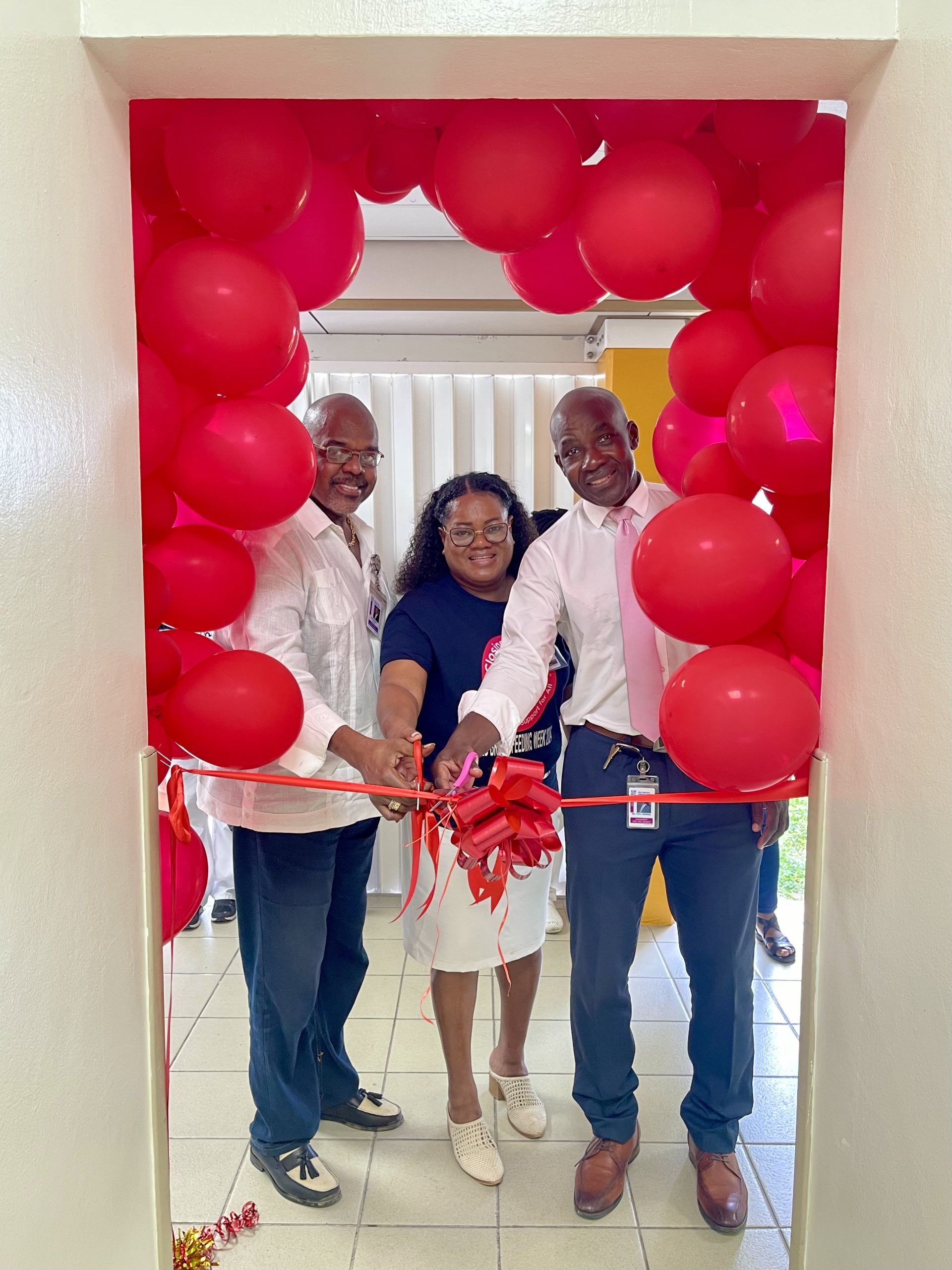 FOTO: (I-D) Enfermero jefe de atención al paciente Antonio Pantophlet, enfermera supervisora de ginecología y pediatría Sherryl Carty-Fleming y el Dr. Felix Holiday, director ejecutivo de SMMC, durante la Semana de la Lactancia Materna 2024, cuando SMMC inauguró el primer Salón de Lactancia Materna de St. Maarten.