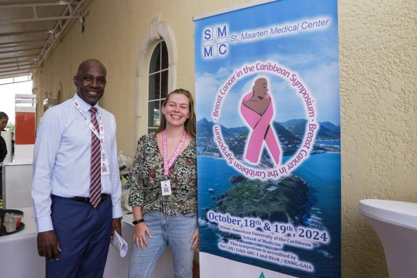 CAY HILL: St. Maarten – Sint Maarten Medical Center organizó recientemente el primer simposio sobre cáncer de mama en el Caribe (BCCS). El simposio acreditado, que contó con más de 100 asistentes, desde especialistas médicos y enfermeras hasta actores del sector de la salud, como compañías de seguros y funcionarios gubernamentales, se celebró en la Universidad Americana del Caribe en Cupecoy y contó con 17 oradores internacionales de Aruba, Bélgica, Curacao, Irlanda, los Países Bajos y St. Maarten. El Honorable Primer Ministro Dr. Luc Mercelina y la Honorable Ministra de VSA Veronica Jansen-Webster estuvieron presentes para inaugurar oficialmente el simposio inaugural.