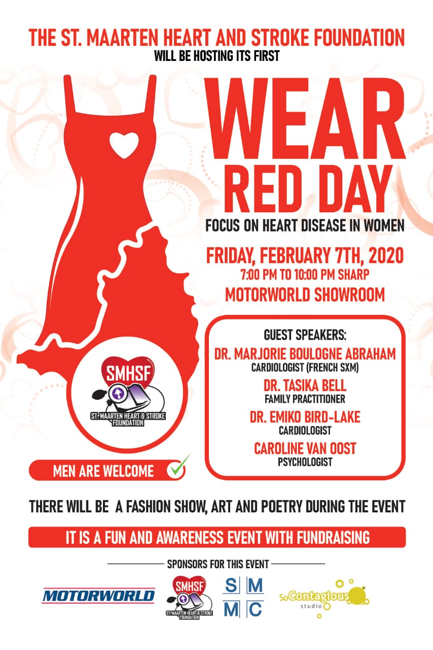 COLE BAY, Sint Maarten – “Go Red for Women”, is a comprehensive platform designed to increase women’s heart health awareness and serve as a catalyst for change to improve the lives of women globally. With emphasis on International Wear Red Day® this Friday, February 7, 2020, the St. Maarten Heart and Stroke Foundation (SMHSF) encourages the community of St. Maarten to wear red and raise awareness about cardiovascular disease, particularly among women, and save lives!