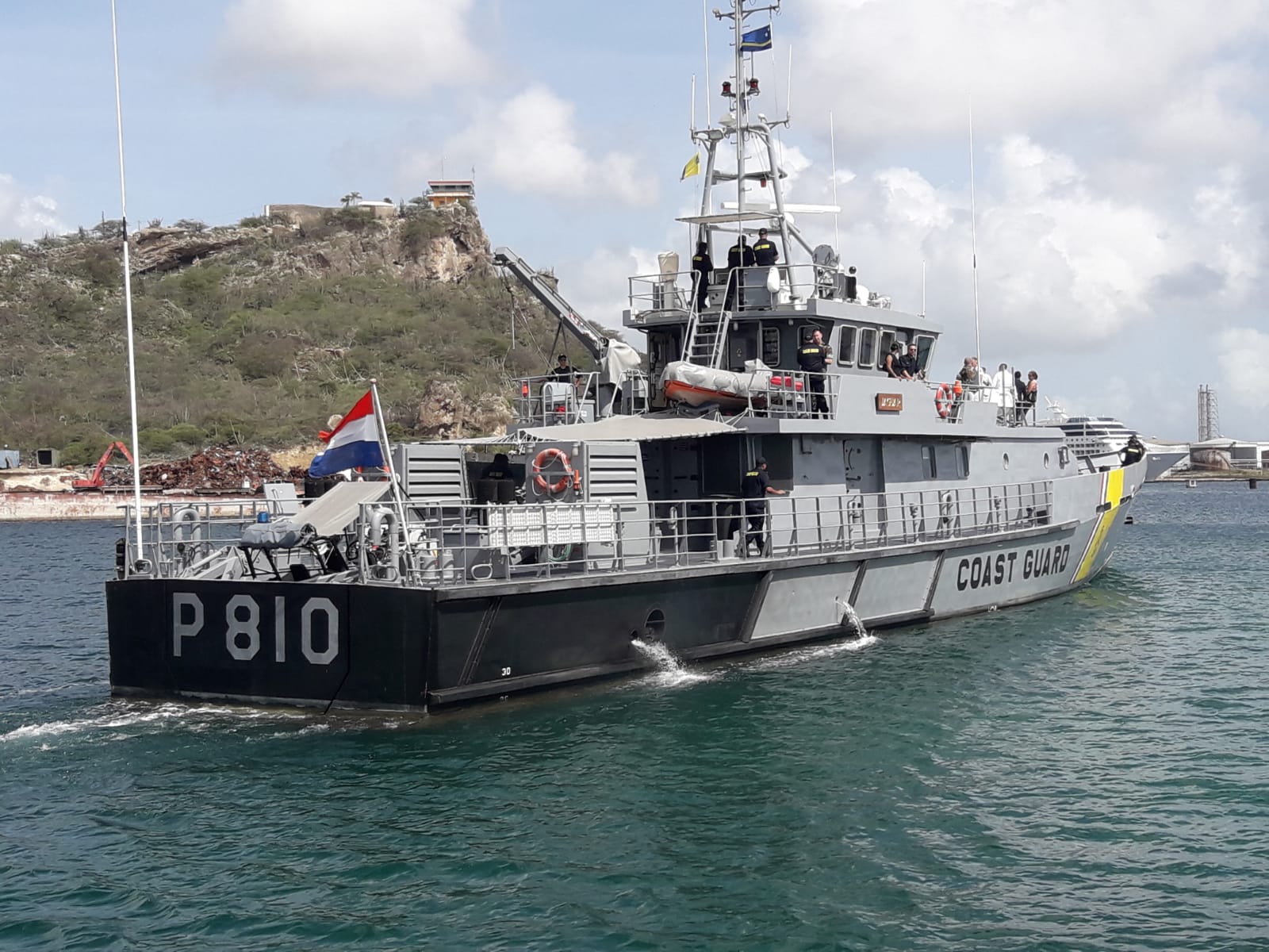 WILLEMSTAD, Curaçao – Mr. Stokkel is the new commander on the Dutch Caribbean Coast Guard cutter Jaguar. Stokkel is the first local from Curaçao to sail on the Jaguar as commander. Stokkel started his career with the Coast Guard after he was transferred from the Antillean militia (now the Caribbean Militia) to the Coast Guard. He started as a fleet operator on board of the P-boats and the inshore boats. When introducing the cutter, he stepped on board of the cutter Jaguar as a sailor.